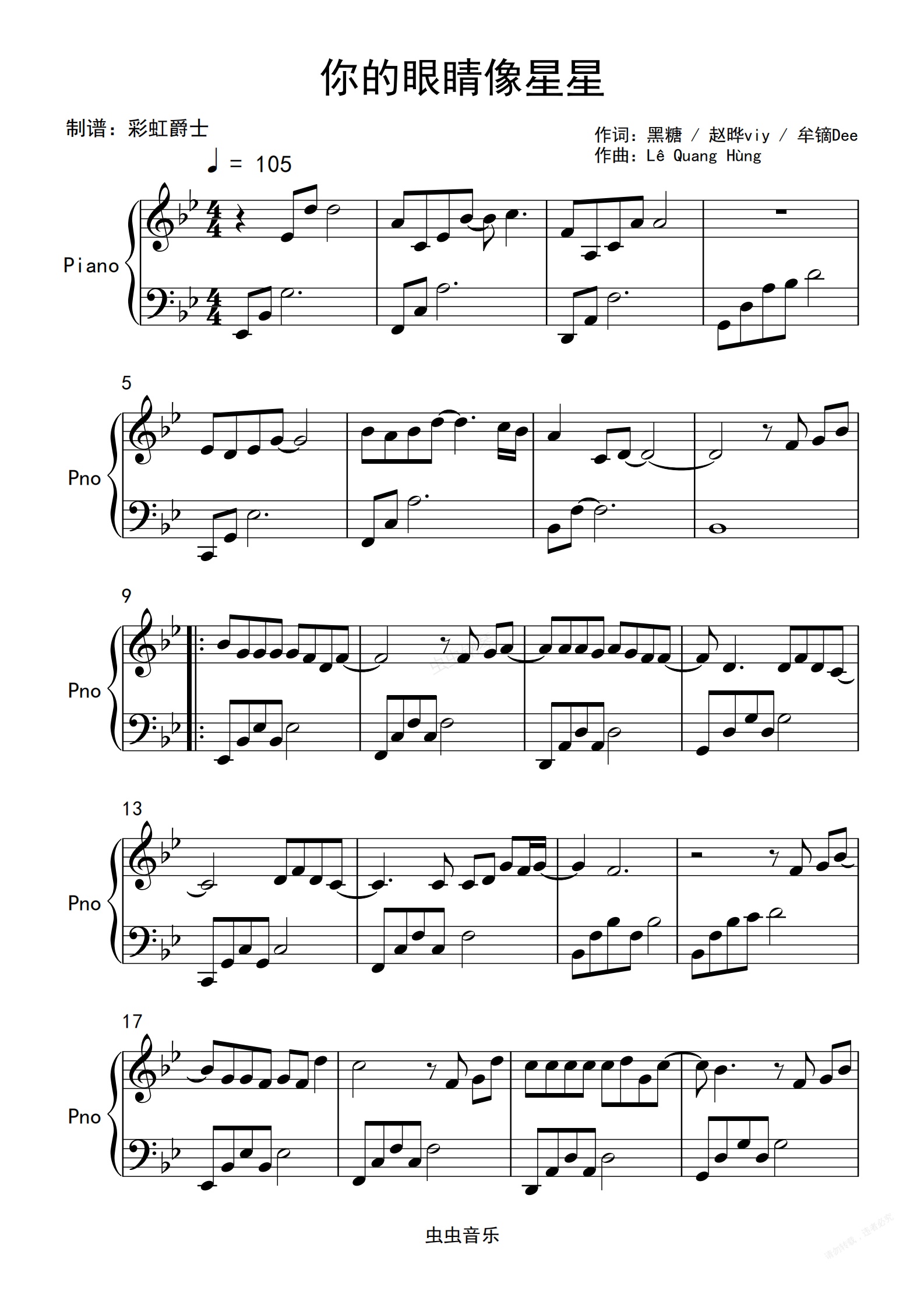 钢琴谱:你的眼睛像星星 原调简单版-抖音-五线谱下载