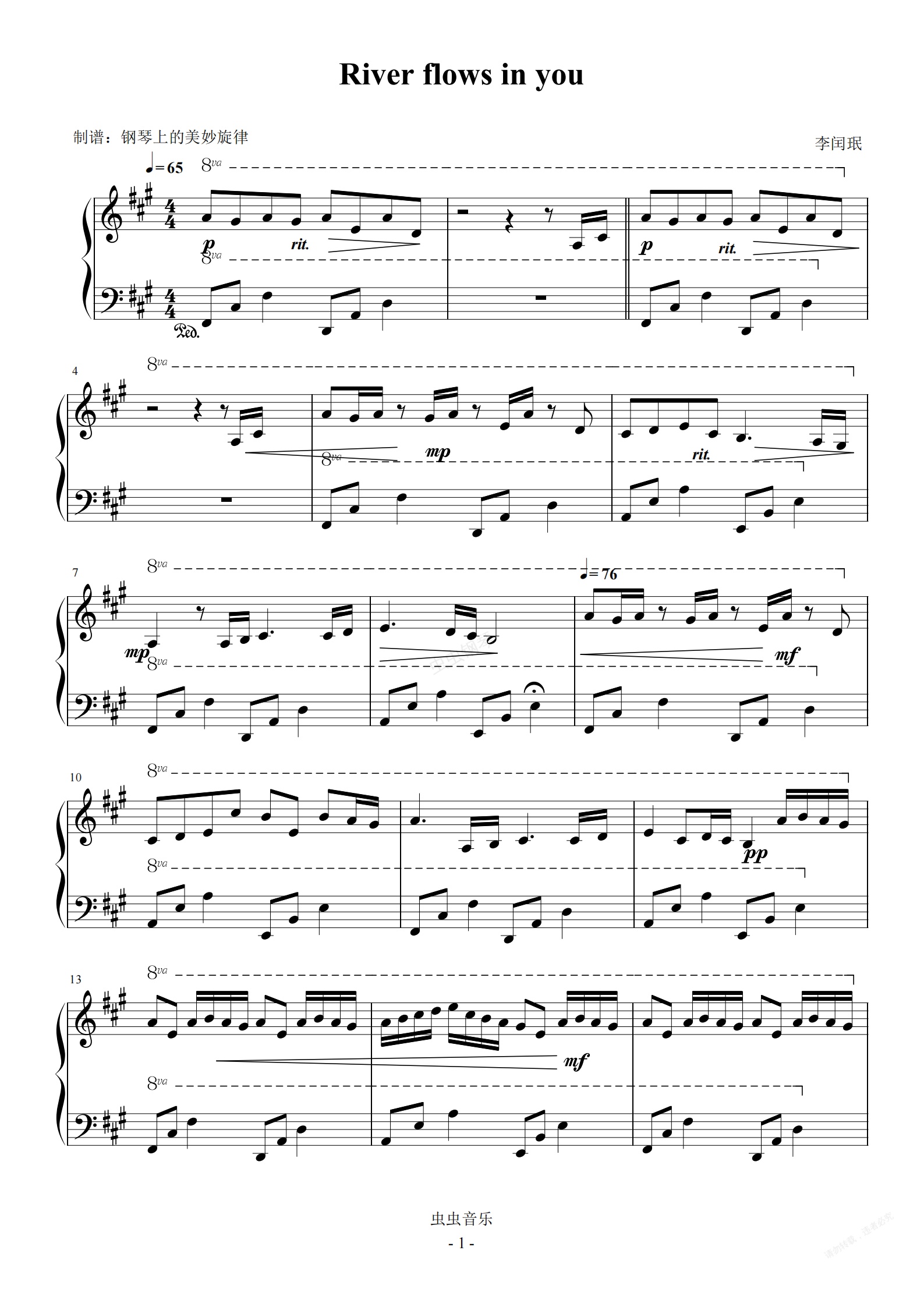 钢琴谱:River flows in you 简易 李闰珉 流行经典