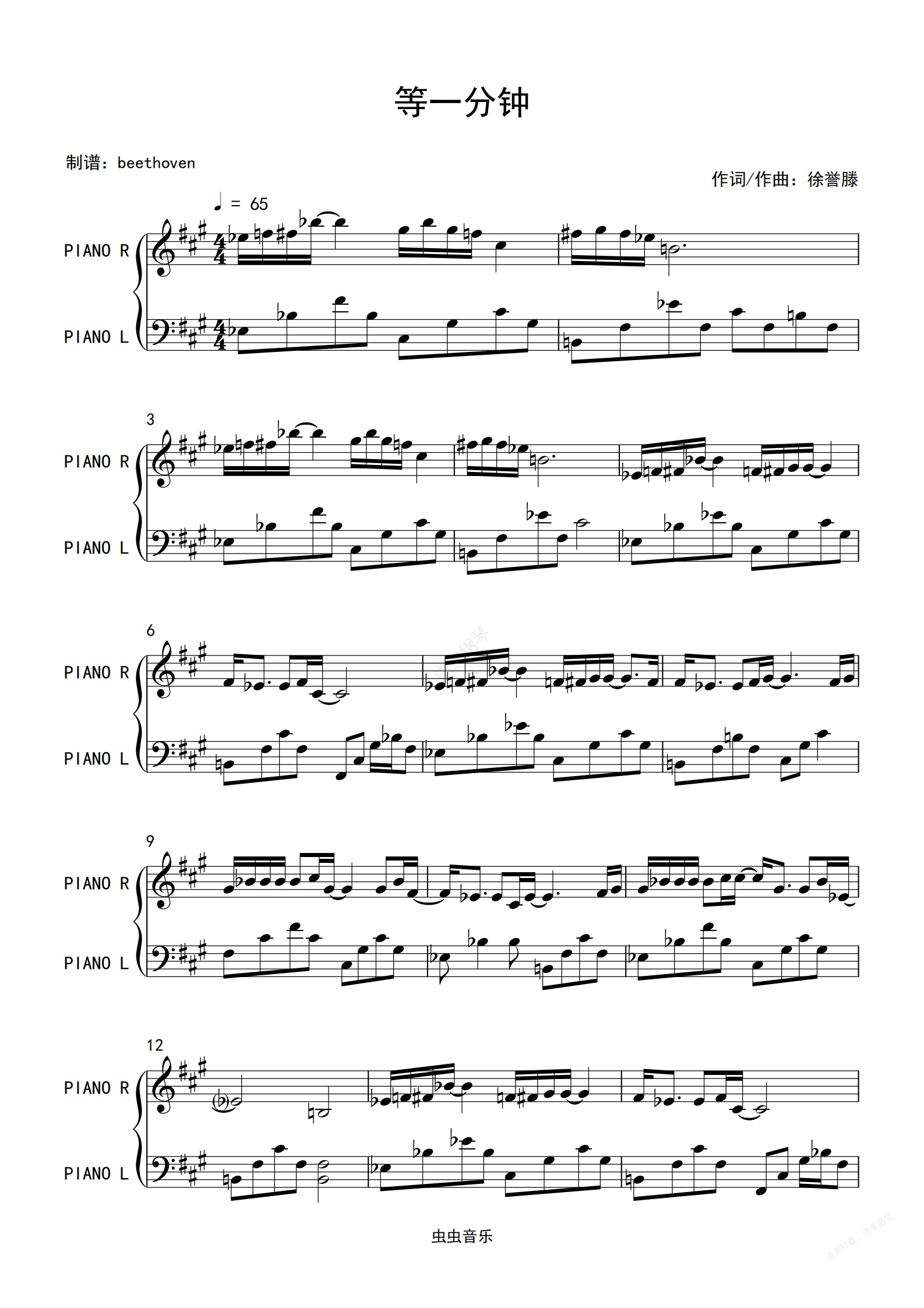 钢琴谱:等一分钟-钢琴 徐誉滕