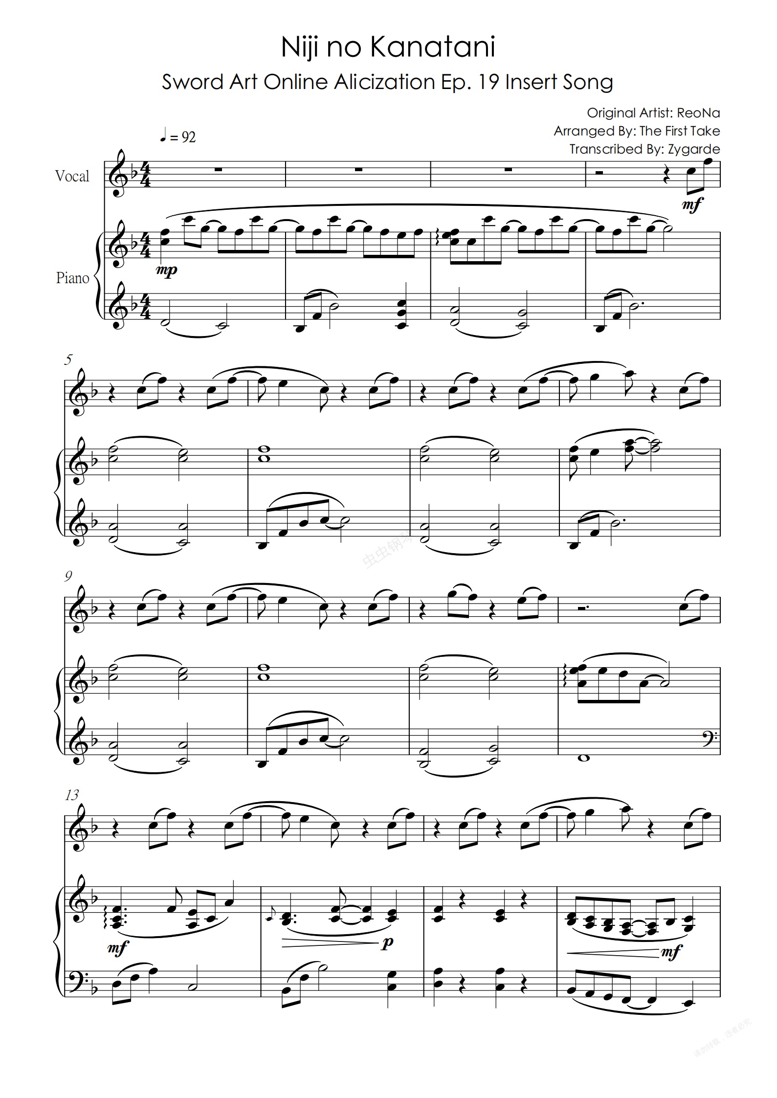 钢琴谱:【扒谱向】虹の彼方に - 刀剑神域 Alicization EP.19 插曲