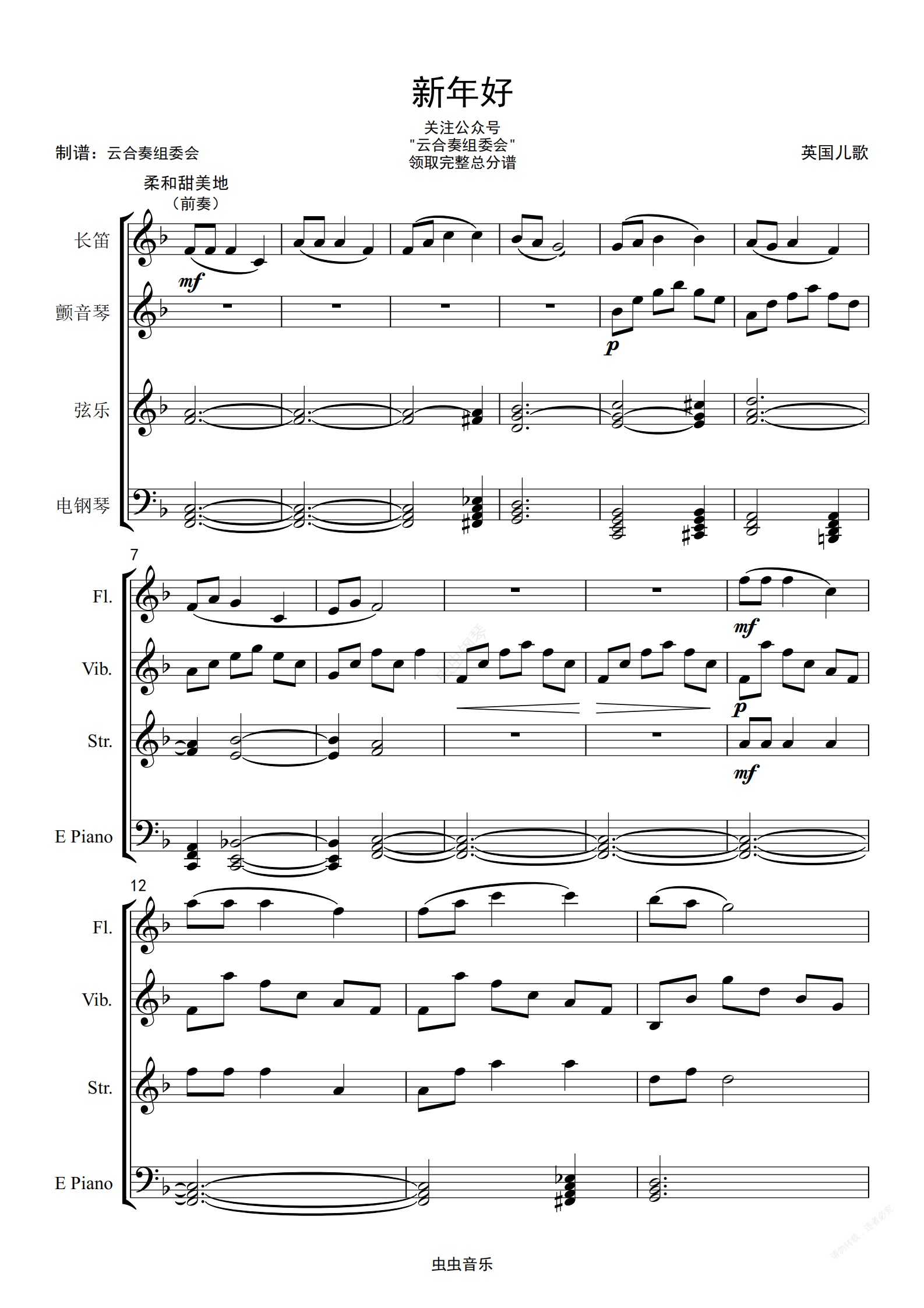 钢琴谱:《新年好》-乐队合奏版。