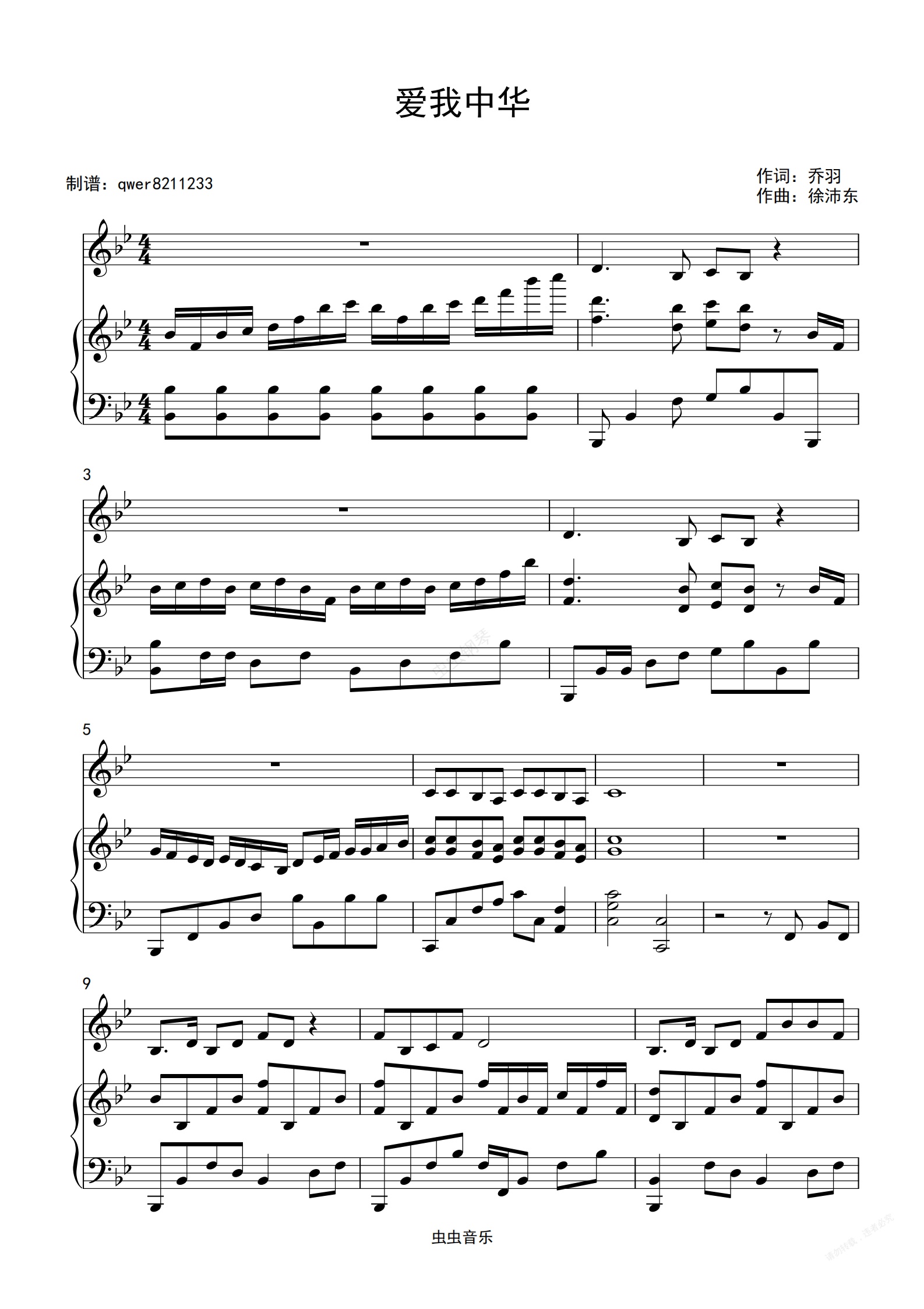 钢琴谱:爱我中华   梦之旅演唱组合(伴奏)