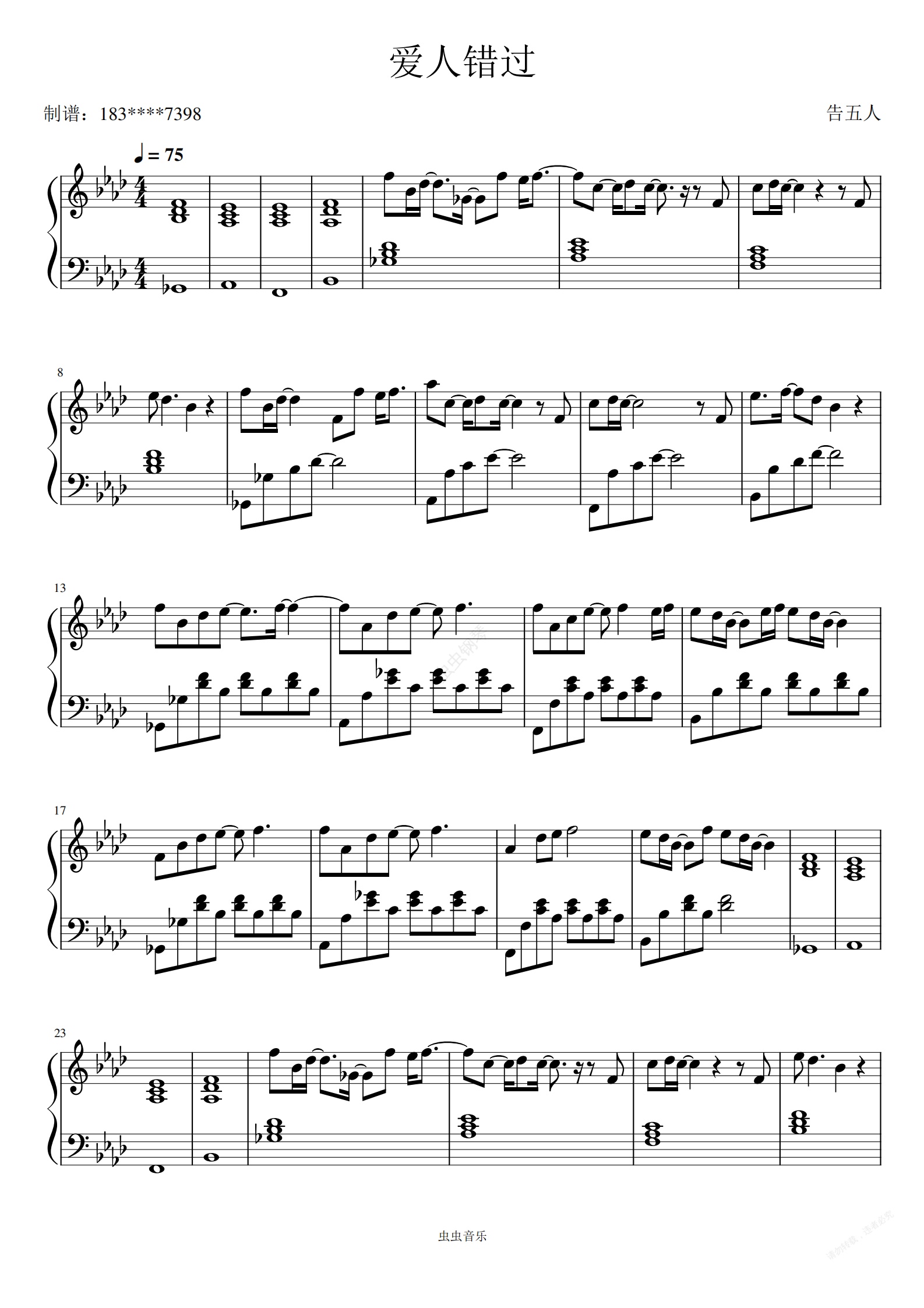钢琴谱:极限原版 -<<爱人错过>>-  --#C调