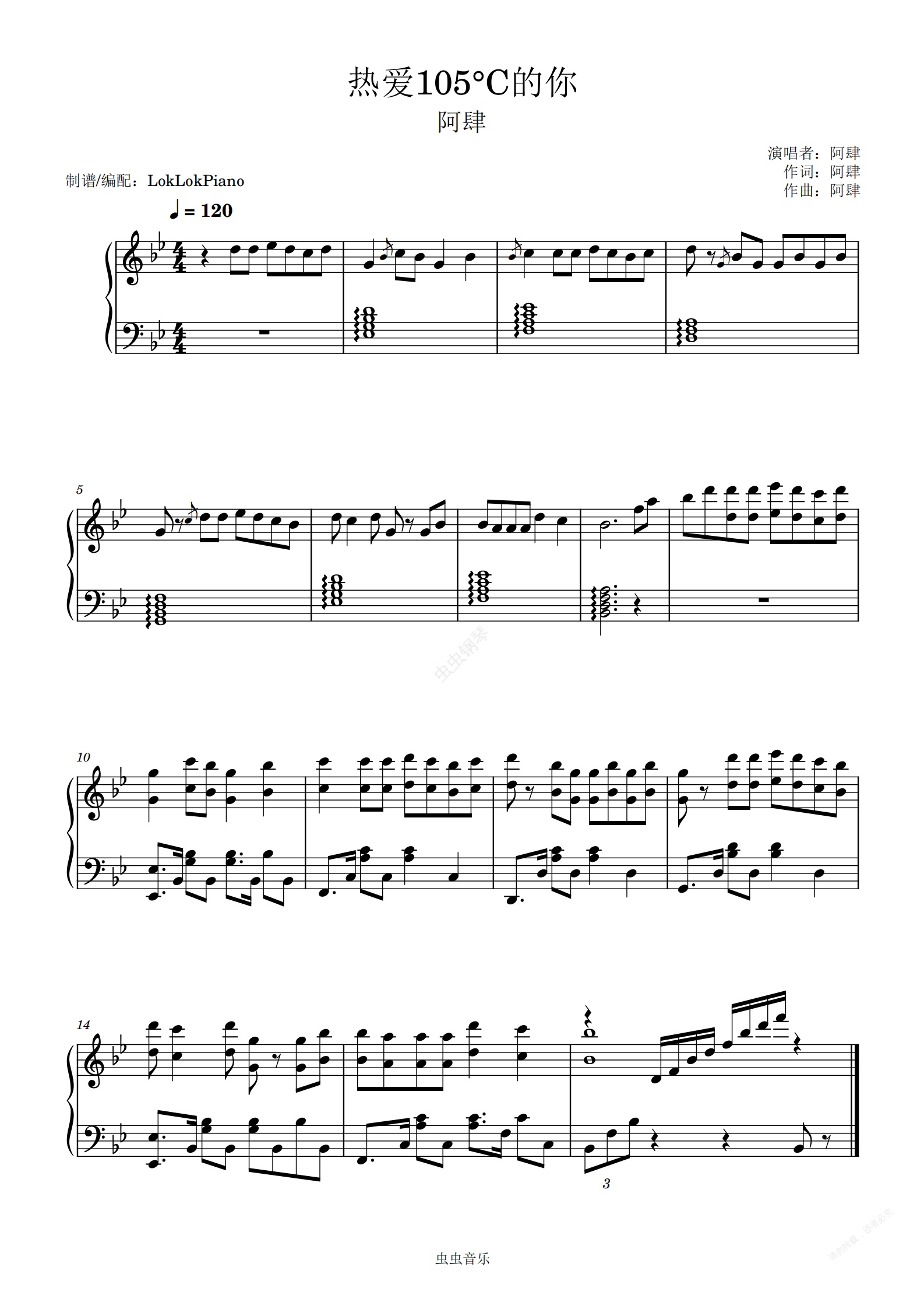 钢琴谱:热爱105°C的你 - 阿肆 | 原调高潮版(LokLok Piano演奏版)