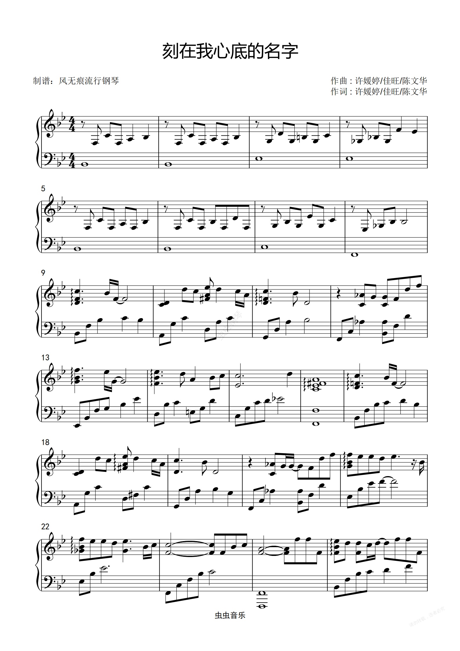 钢琴谱:原调-刻在我心底的名字-卢广仲〖丰富版〗