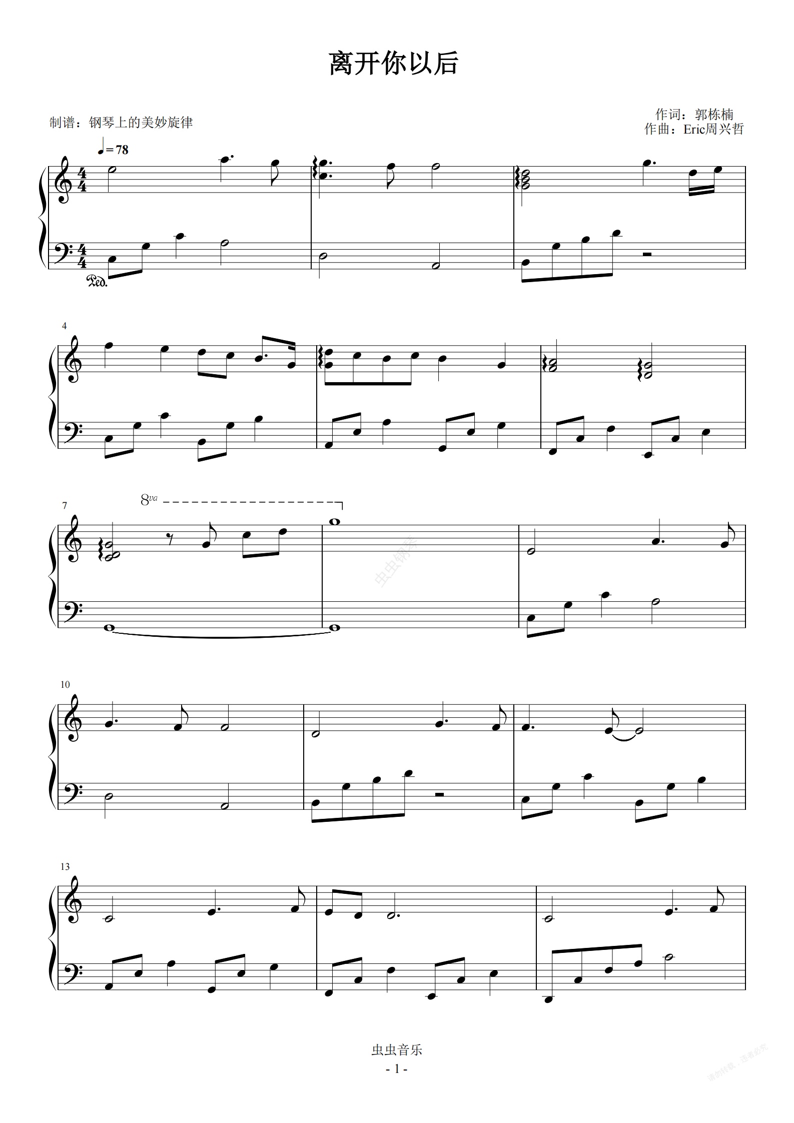钢琴谱:离开你以后 你的婚礼插曲 C调简易版 周兴哲