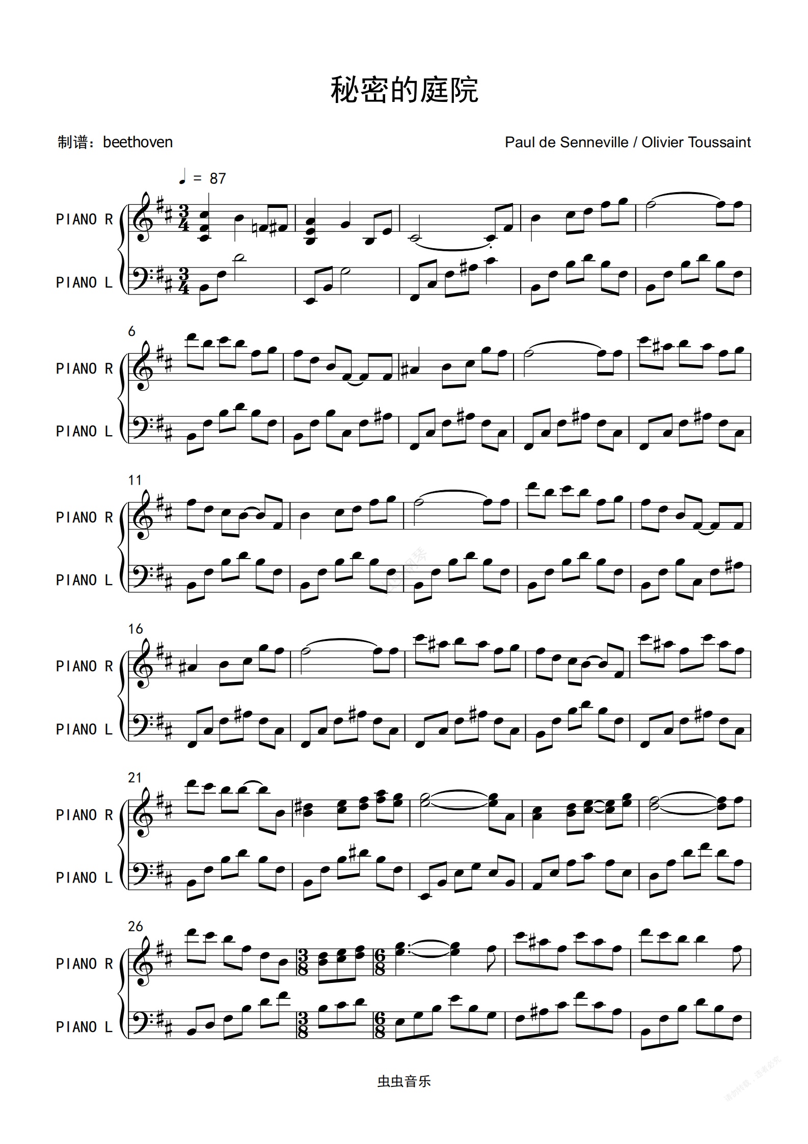 钢琴谱:秘密的庭院-钢琴独奏-理查德克莱德曼