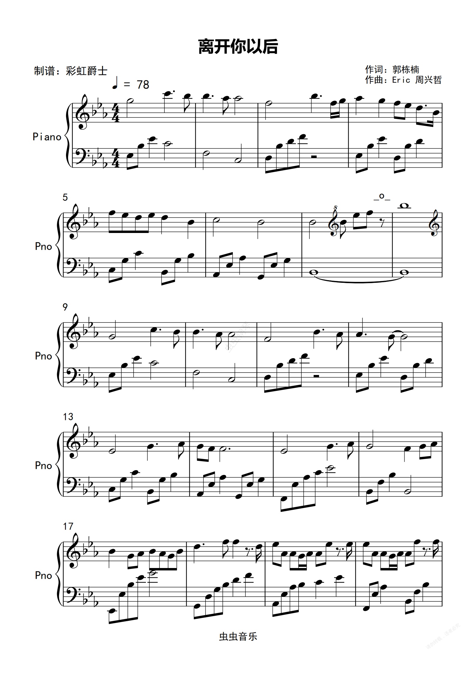 钢琴谱:离开你以后-简单版-你的婚礼插曲
