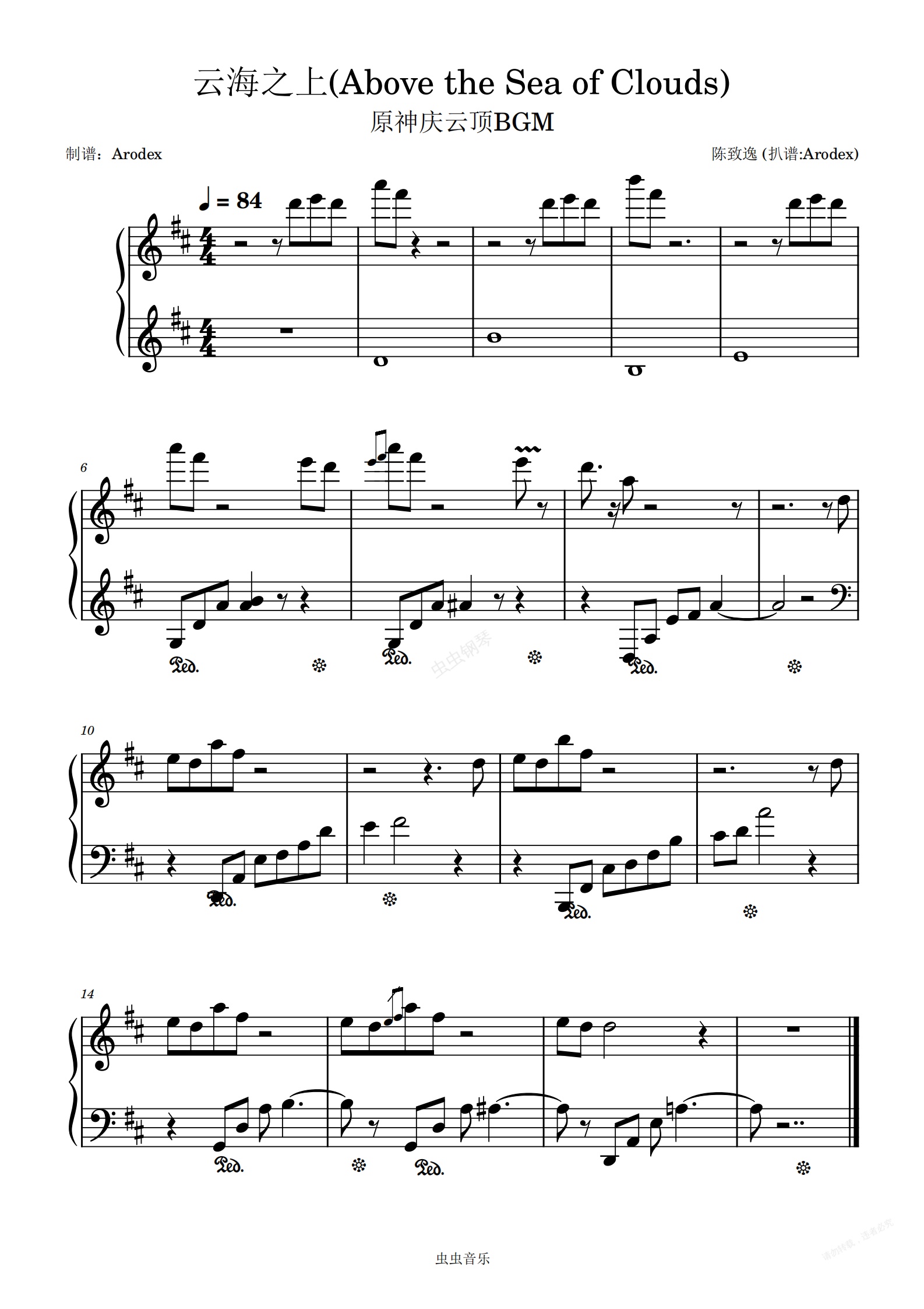 钢琴谱:云海之上(Above the Sea of Clouds) 原神庆云顶BGM
