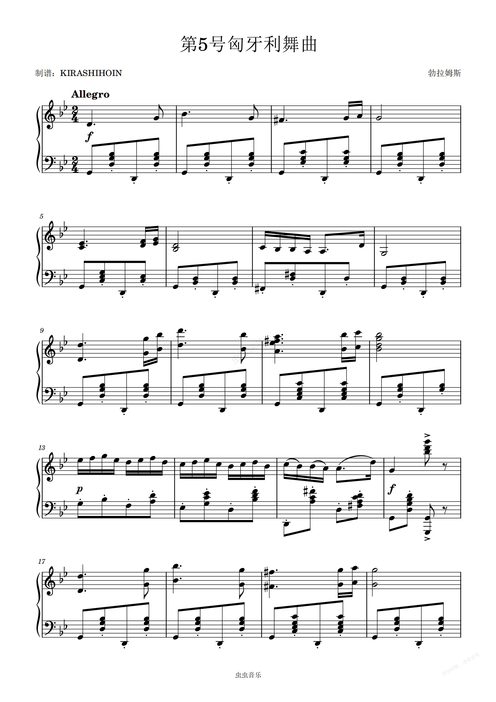 钢琴谱:第5号匈牙利舞曲/Hungarian Dance No.5 - 勃拉姆斯