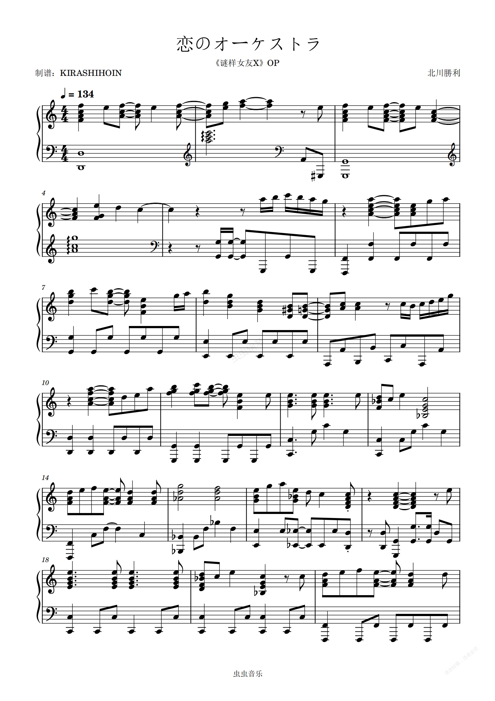 钢琴谱:恋のオーケストラ(《谜样女友X》OP)