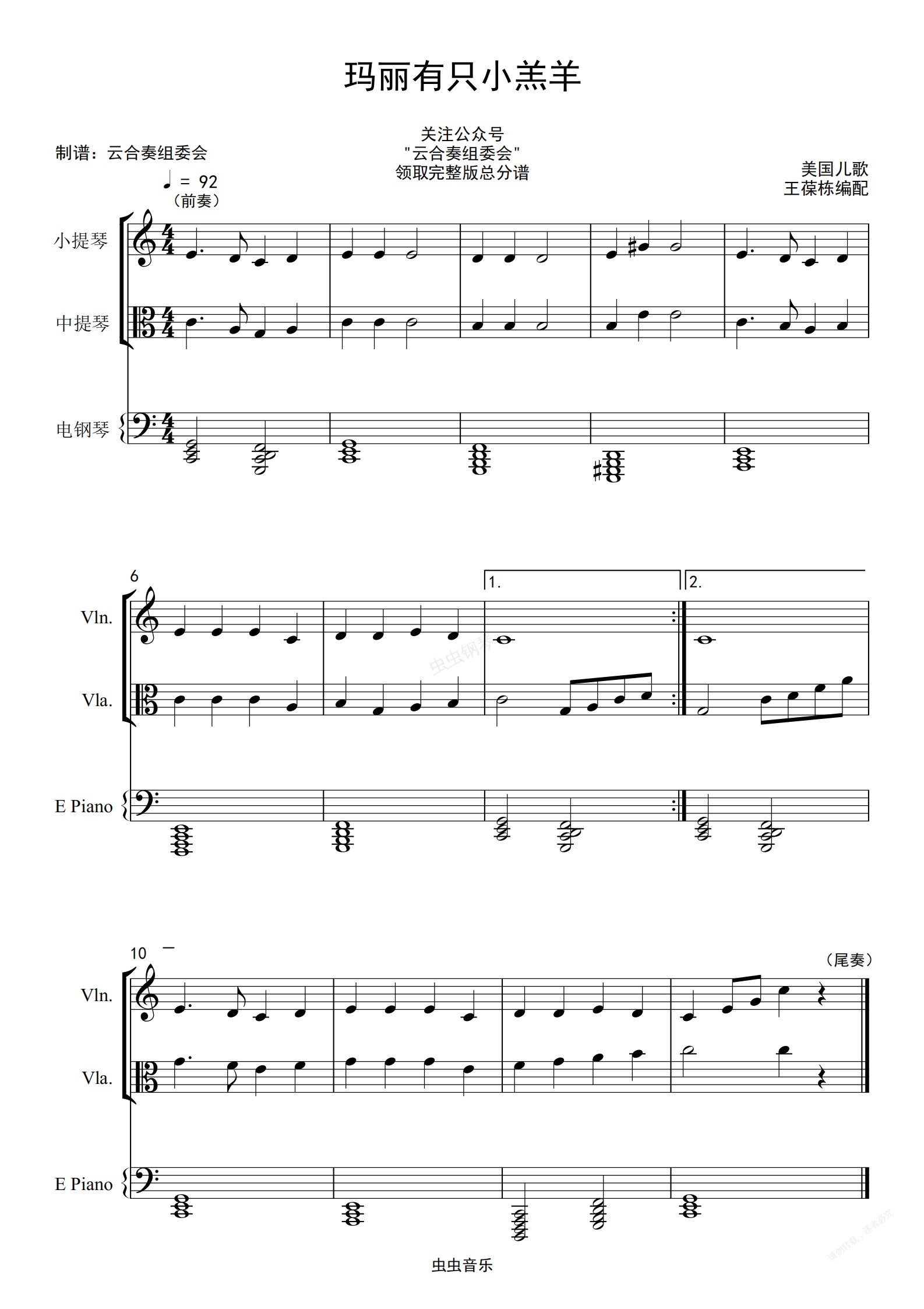 钢琴谱:《玛丽有只小羔羊》-乐队合奏版