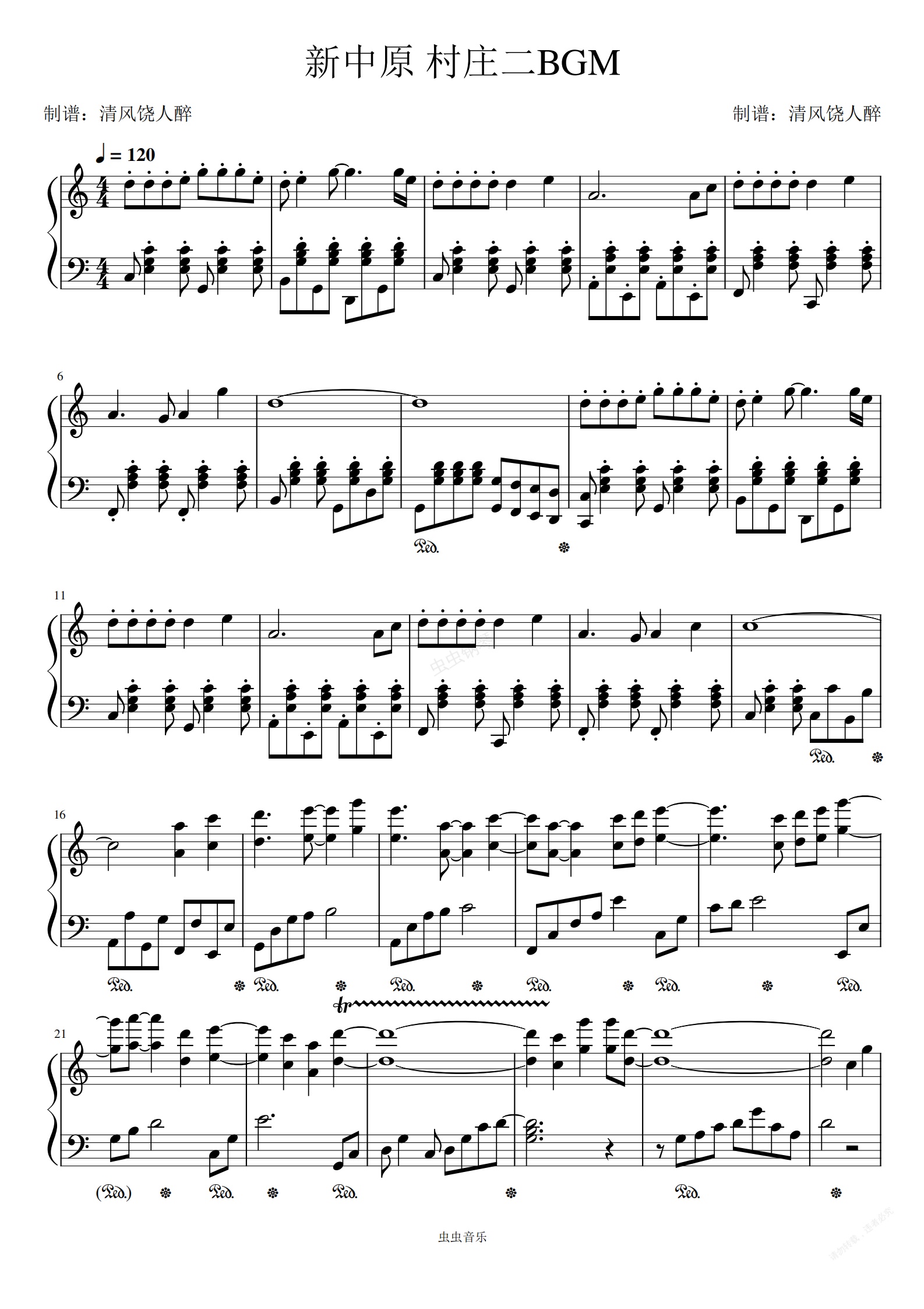 钢琴谱:网游天下三新中原村庄二BGM