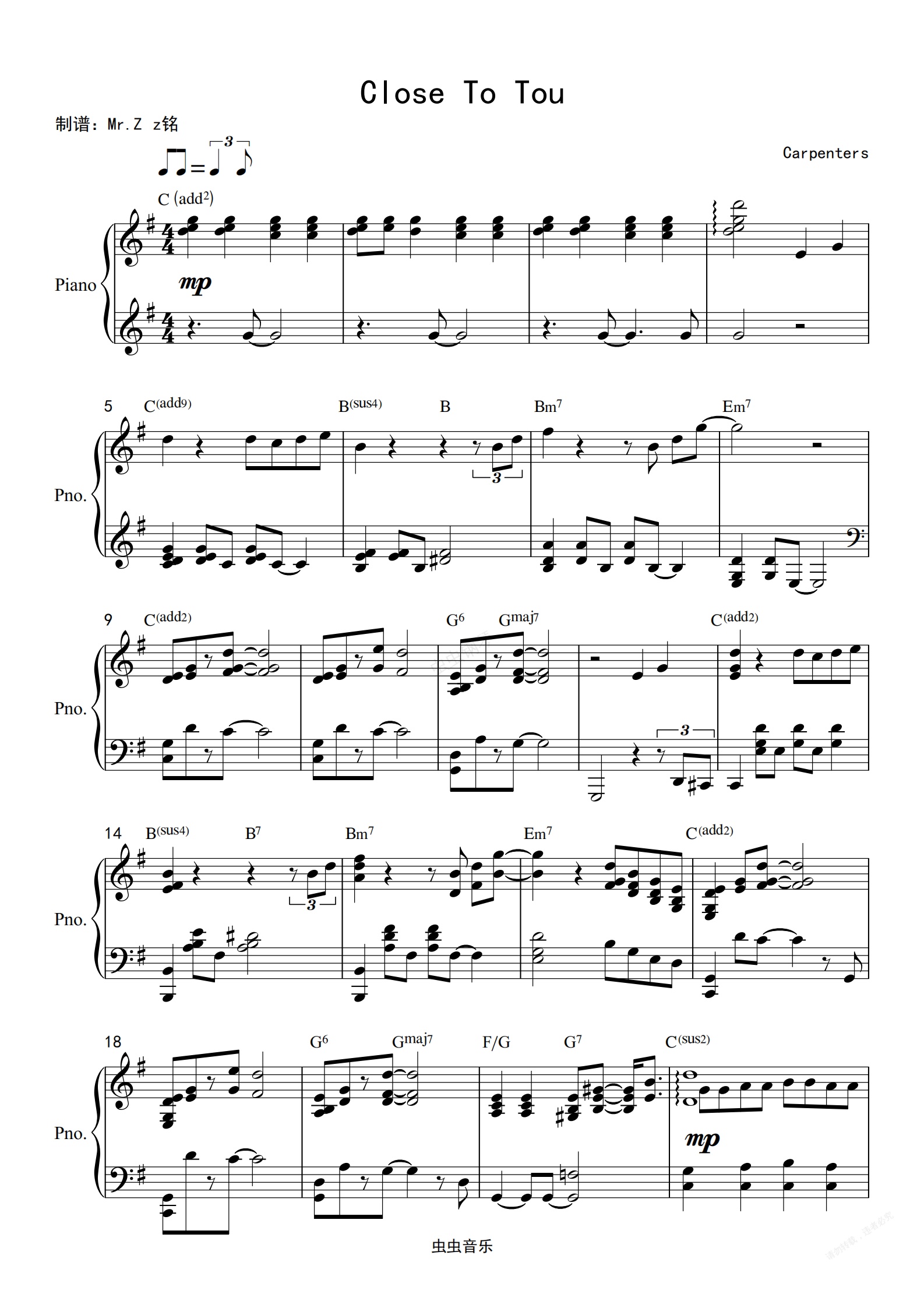 钢琴谱:德芙Close to you 爵士独奏曲