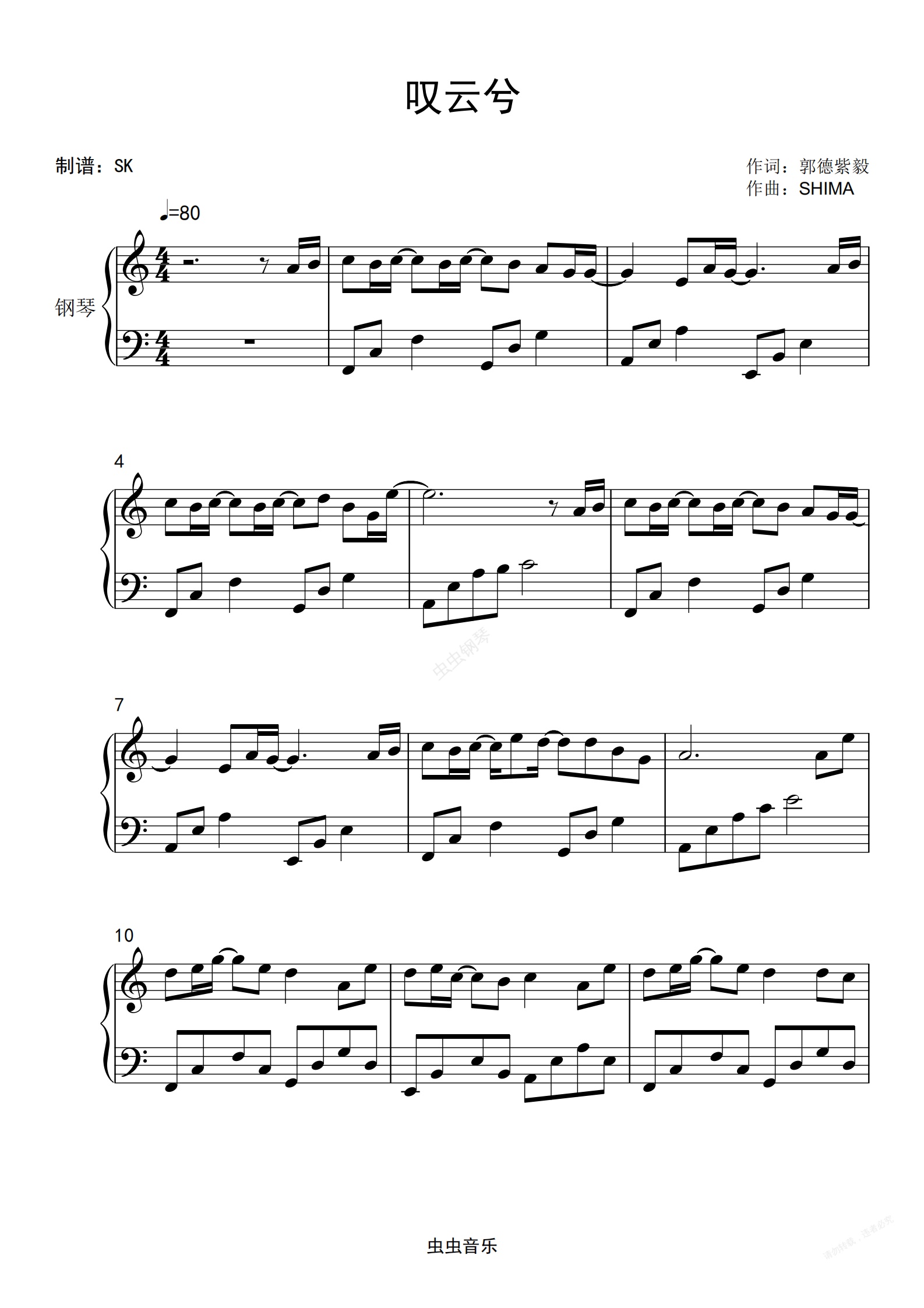 钢琴谱:鞠婧祎《芸汐传》片尾曲《叹云兮》入门C调简单版