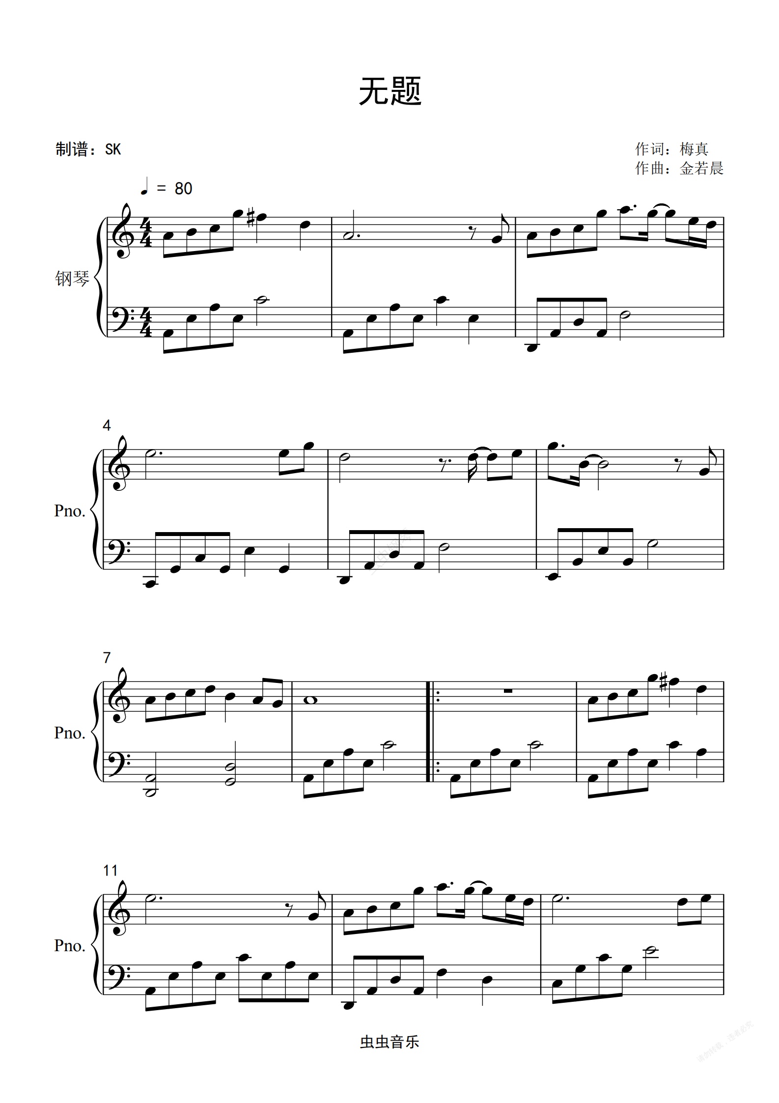 钢琴谱:胡夏《山河令》插曲《无题》入门C调简单抒情版