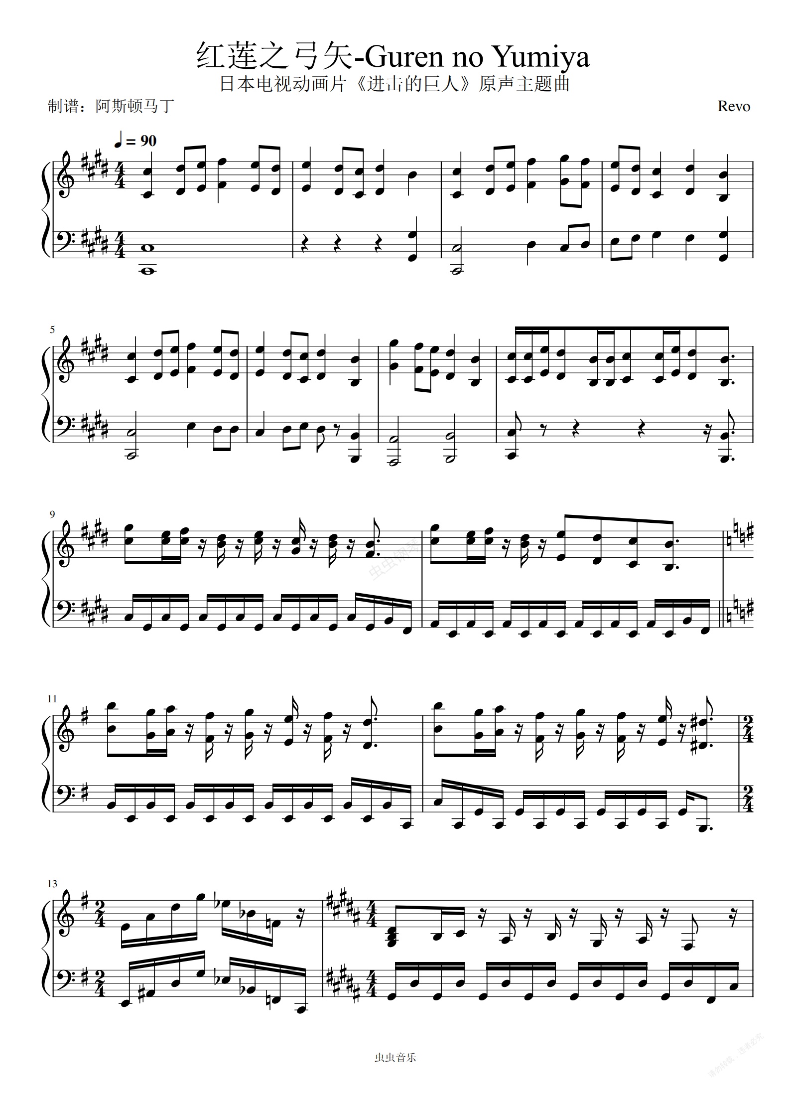 钢琴谱:红莲之弓矢-Guren no Yumiya