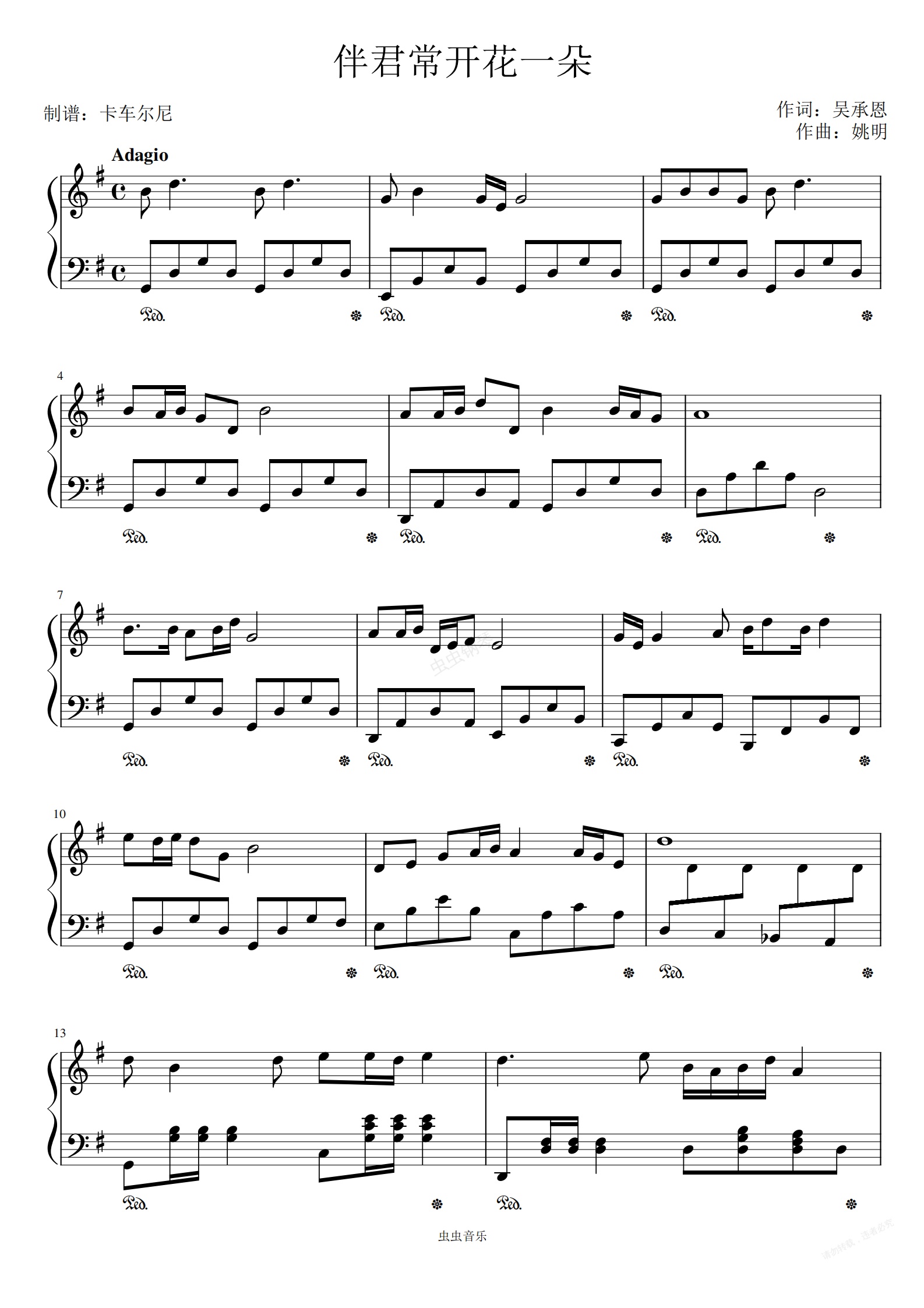 钢琴谱:《西游记》插曲,伴君常开花一朵 孔雀公主专属BGM