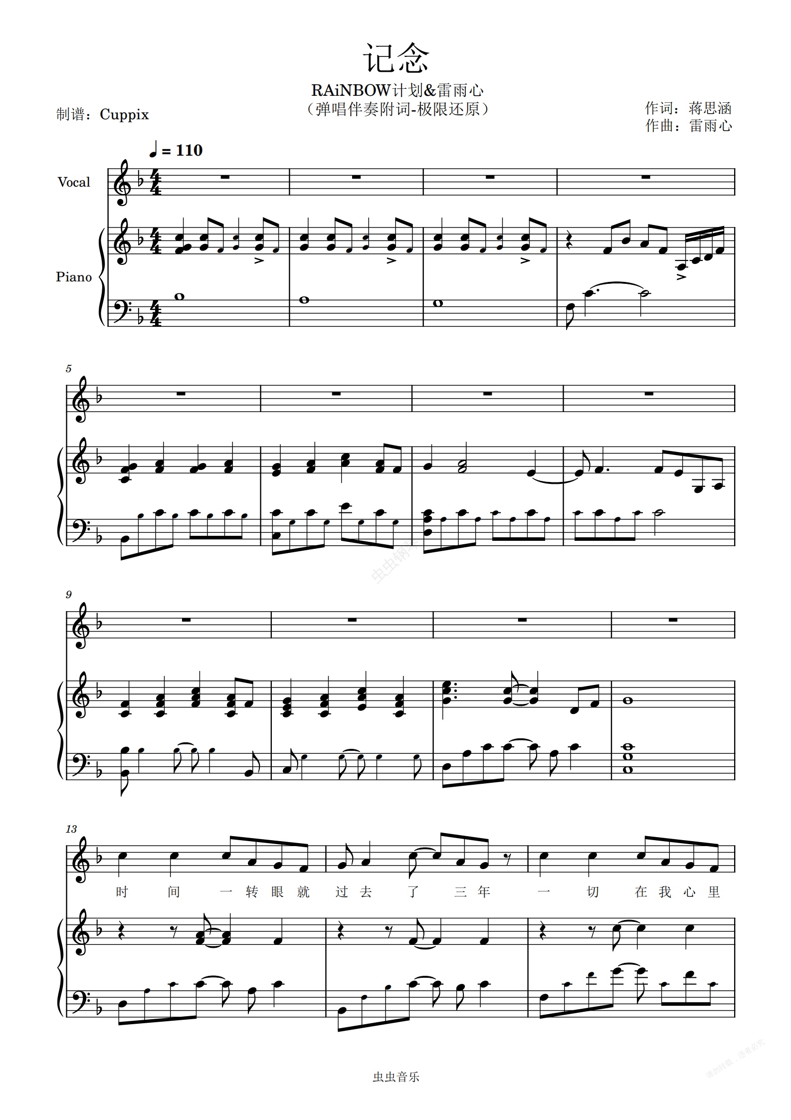 钢琴谱:雷雨心《记念》弹唱伴奏极限还原(RAiNBOW计划 纪念)
