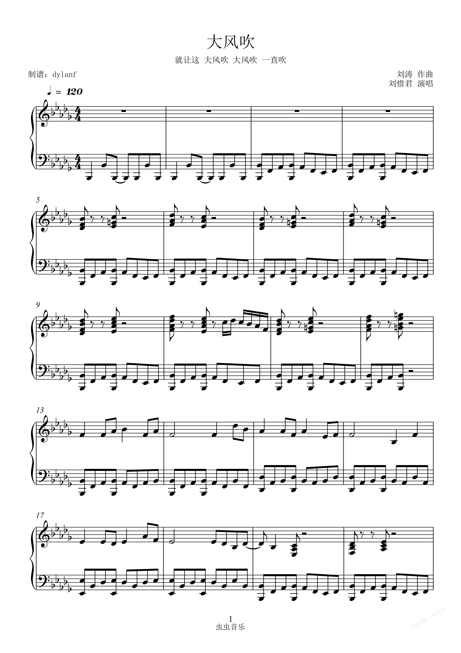 钢琴谱:大风吹《天赐的声音》原调 刘惜君