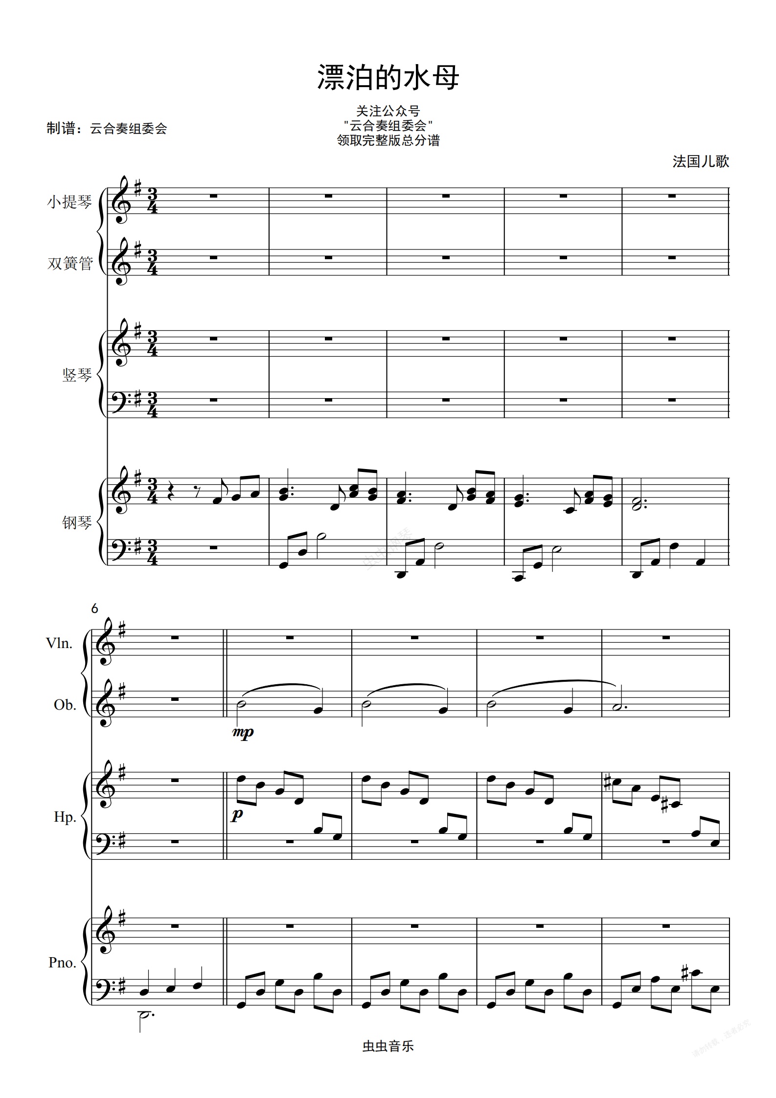 钢琴谱:《漂泊的水母》-乐队合奏版
