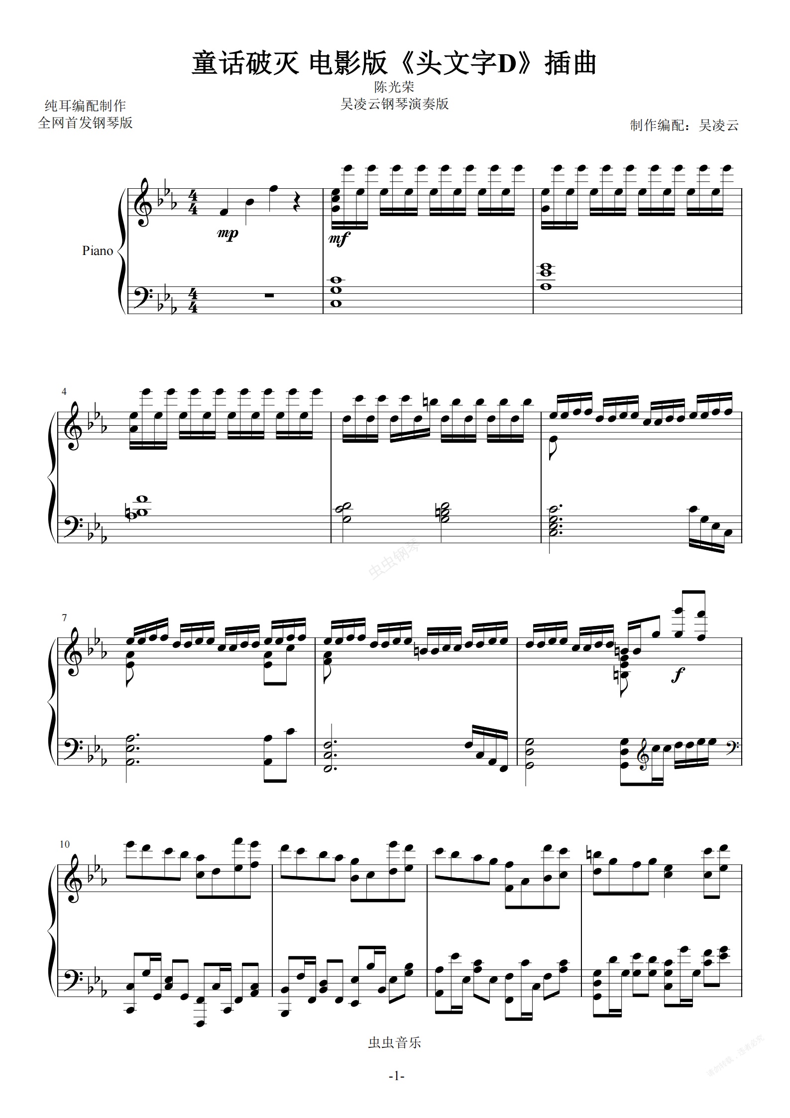 钢琴谱:童话破灭 电影版《头文字D》插曲 吴凌云钢琴演奏版