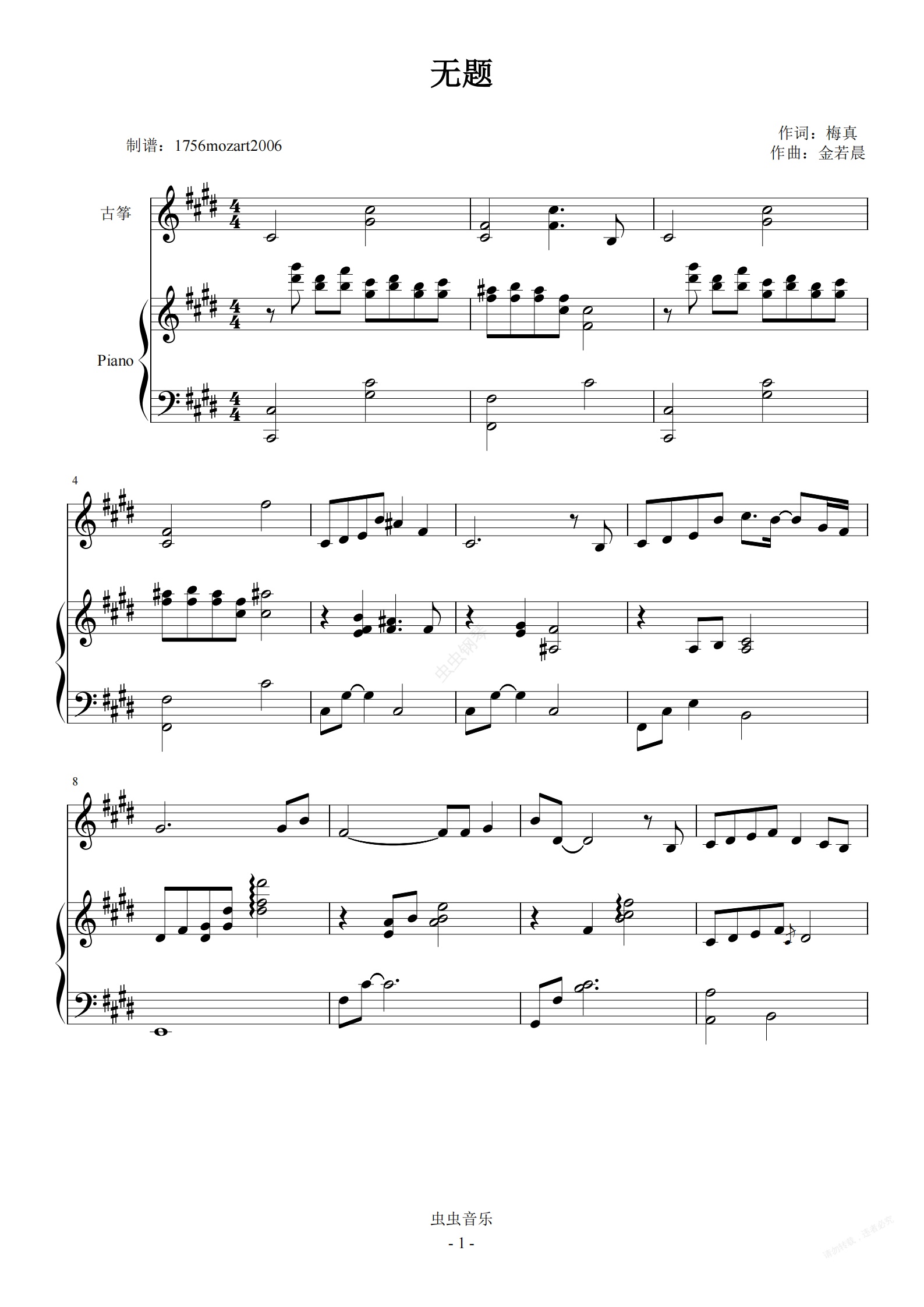 钢琴谱:无题(古筝+钢琴合奏)-胡夏(《山河令》插曲)