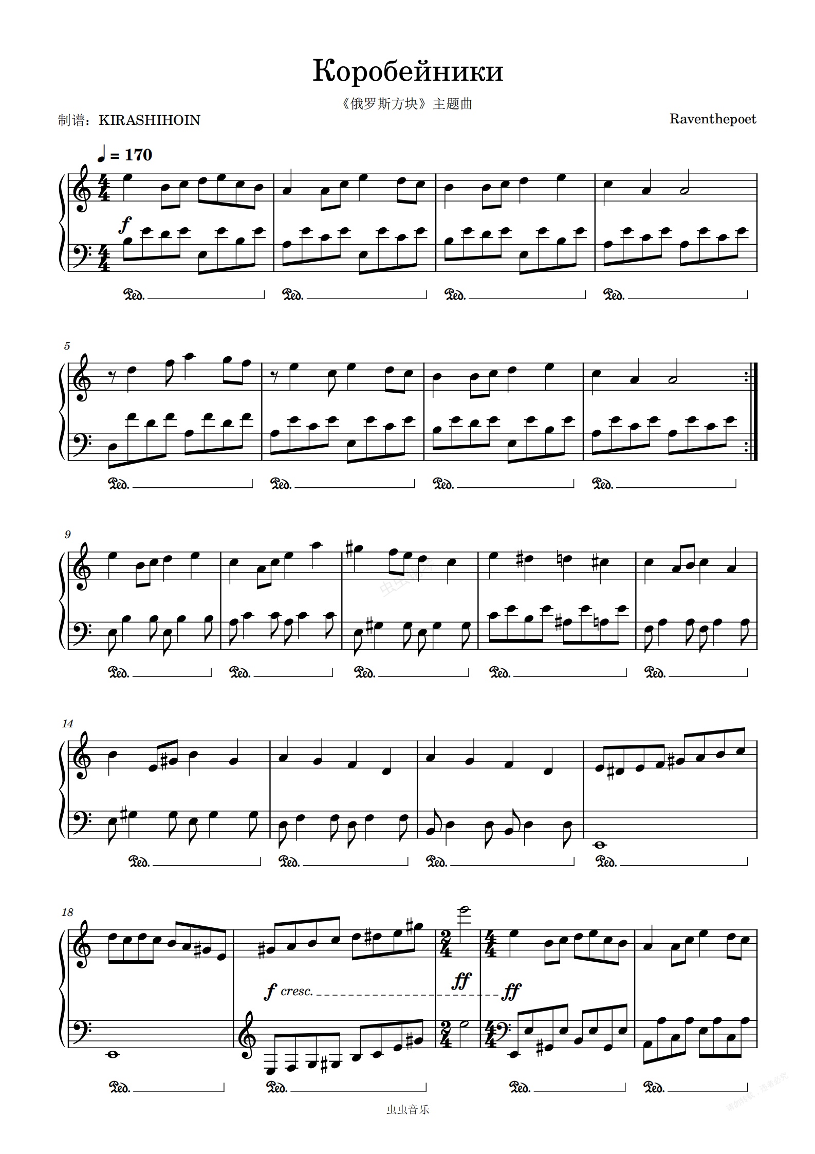 钢琴谱:货郎/Коробейники(《俄罗斯方块》主题曲)