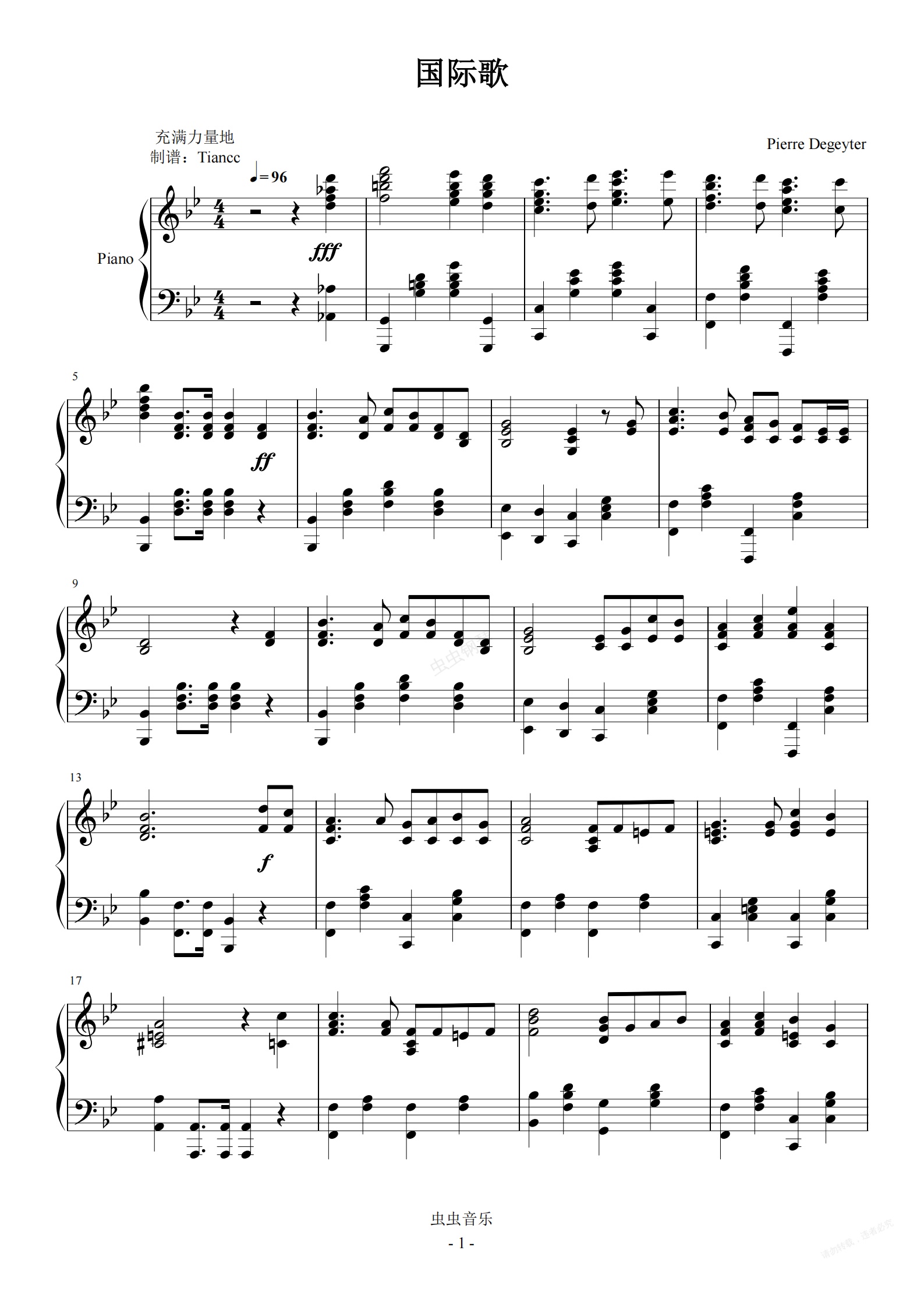 钢琴谱:《国际歌》大气恢宏演奏版,849+难度