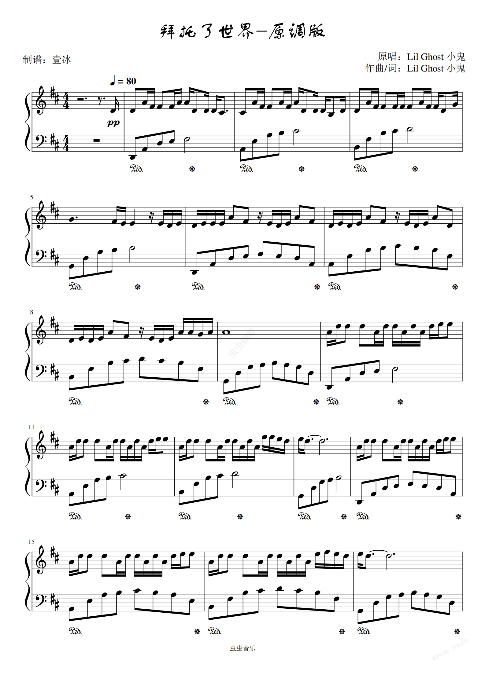 钢琴谱:拜托了世界//Lil Ghost 小鬼-原调版