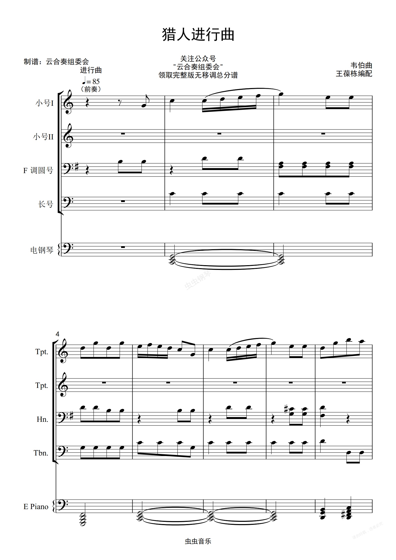 钢琴谱:《猎人进行曲》-乐队合奏版
