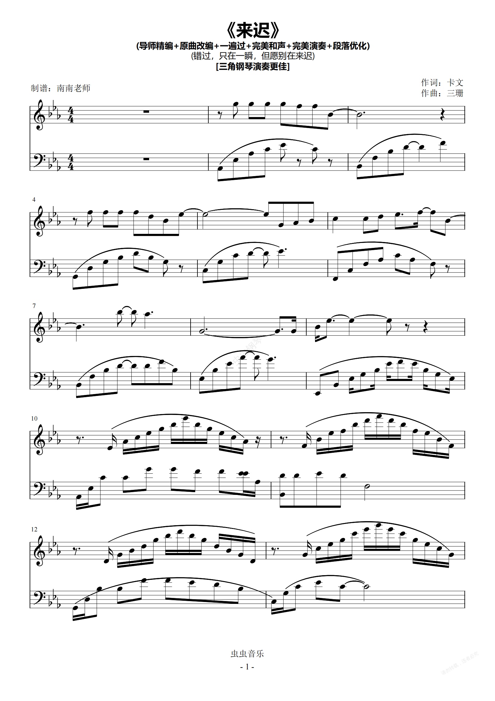 钢琴谱:《完美诠释版》来迟 -南南导师改编