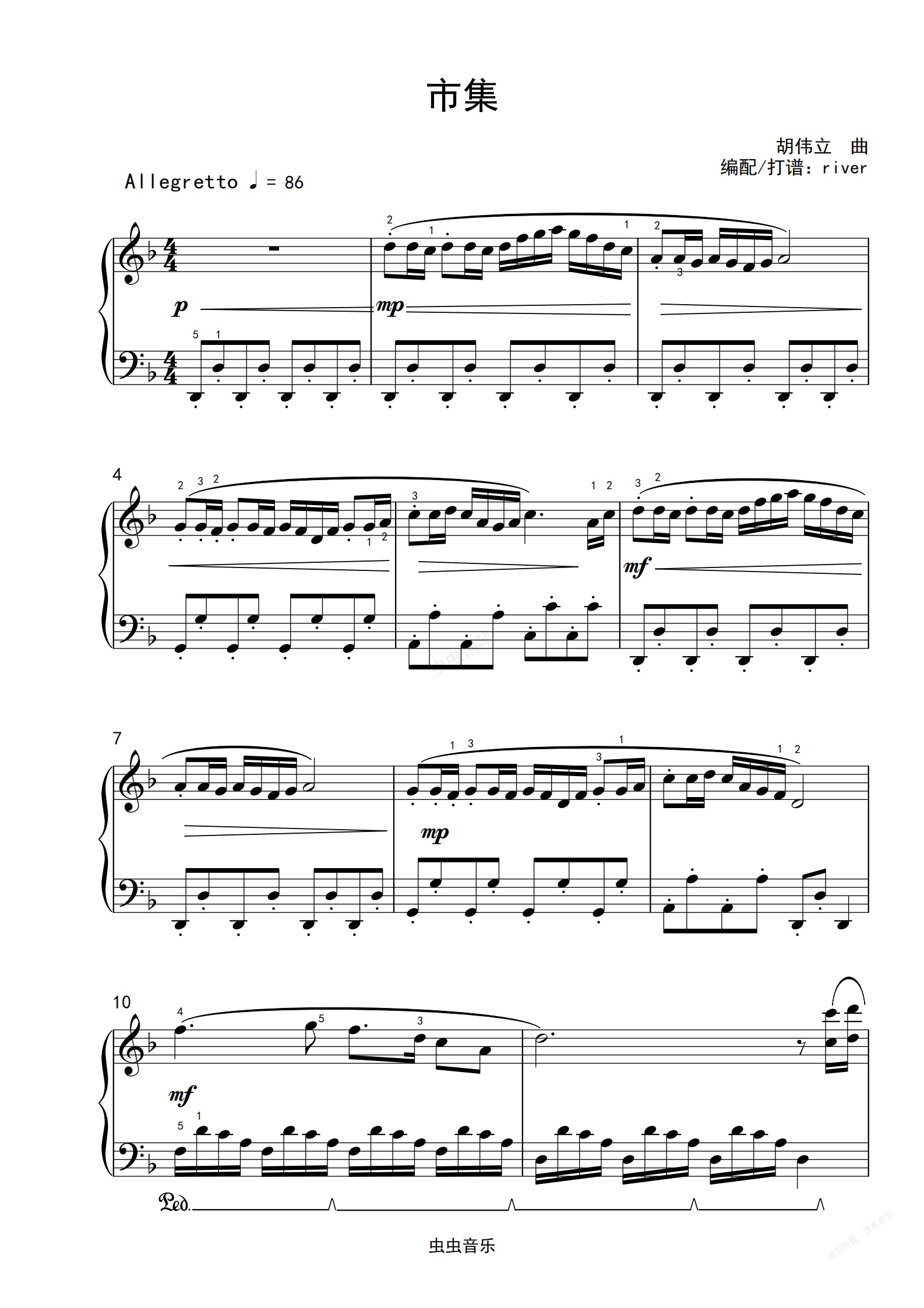 钢琴谱:市集 原曲和声+精编+踏板指引+指法
