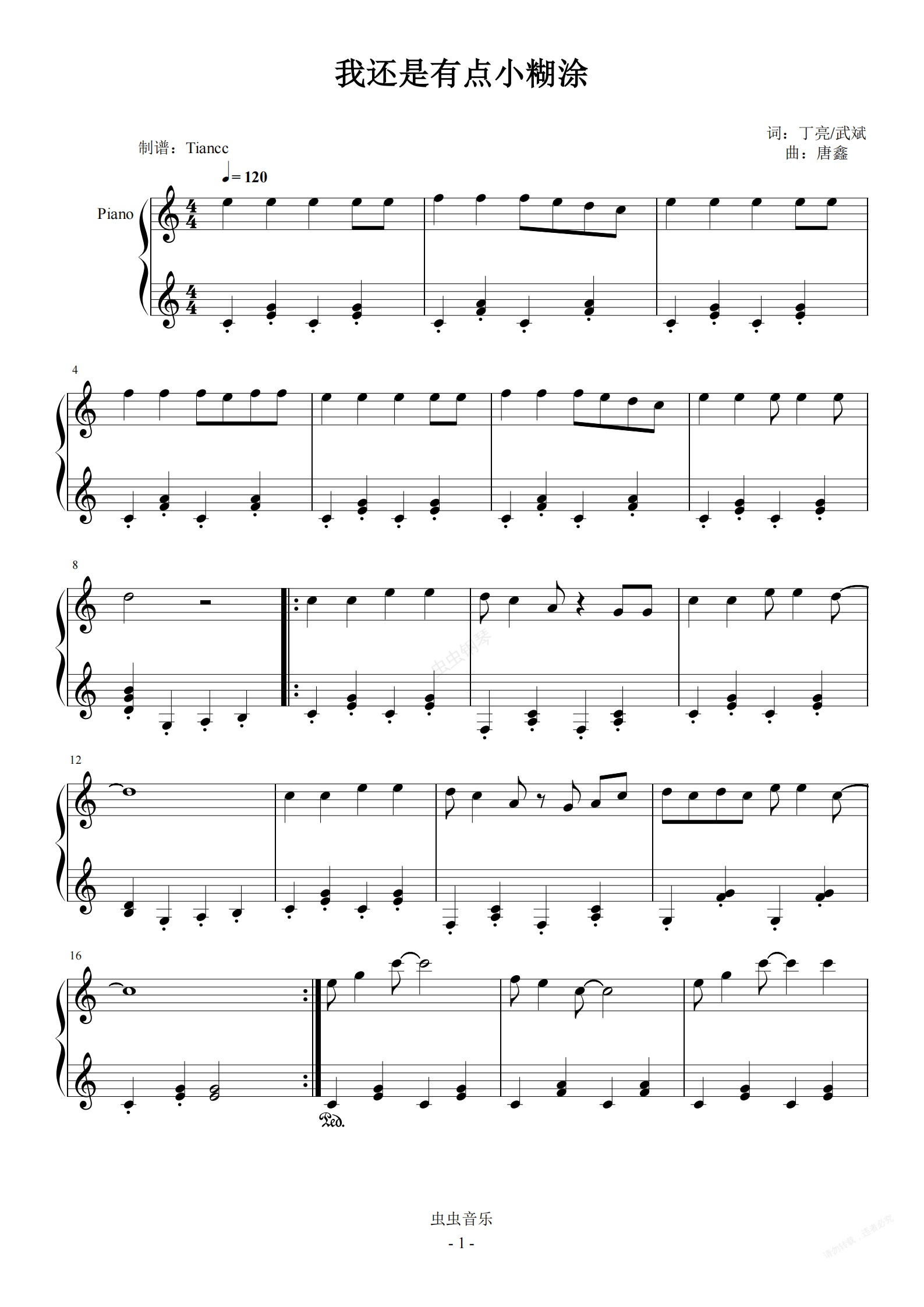 钢琴谱:《我还是有点小糊涂》熊出没主题曲,拜厄难度