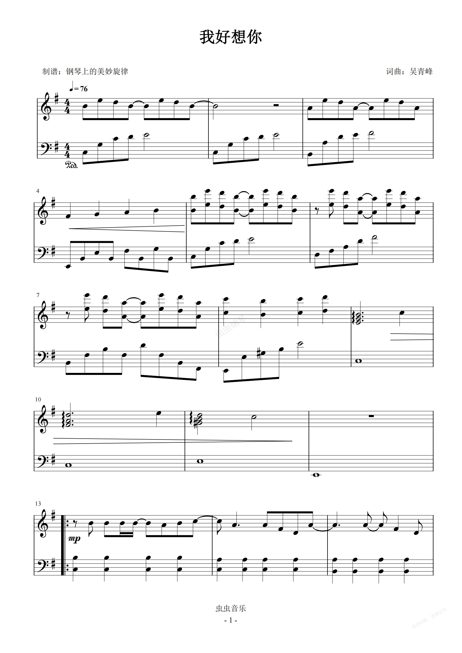 钢琴谱:我好想你 小时代 主题曲 简易版