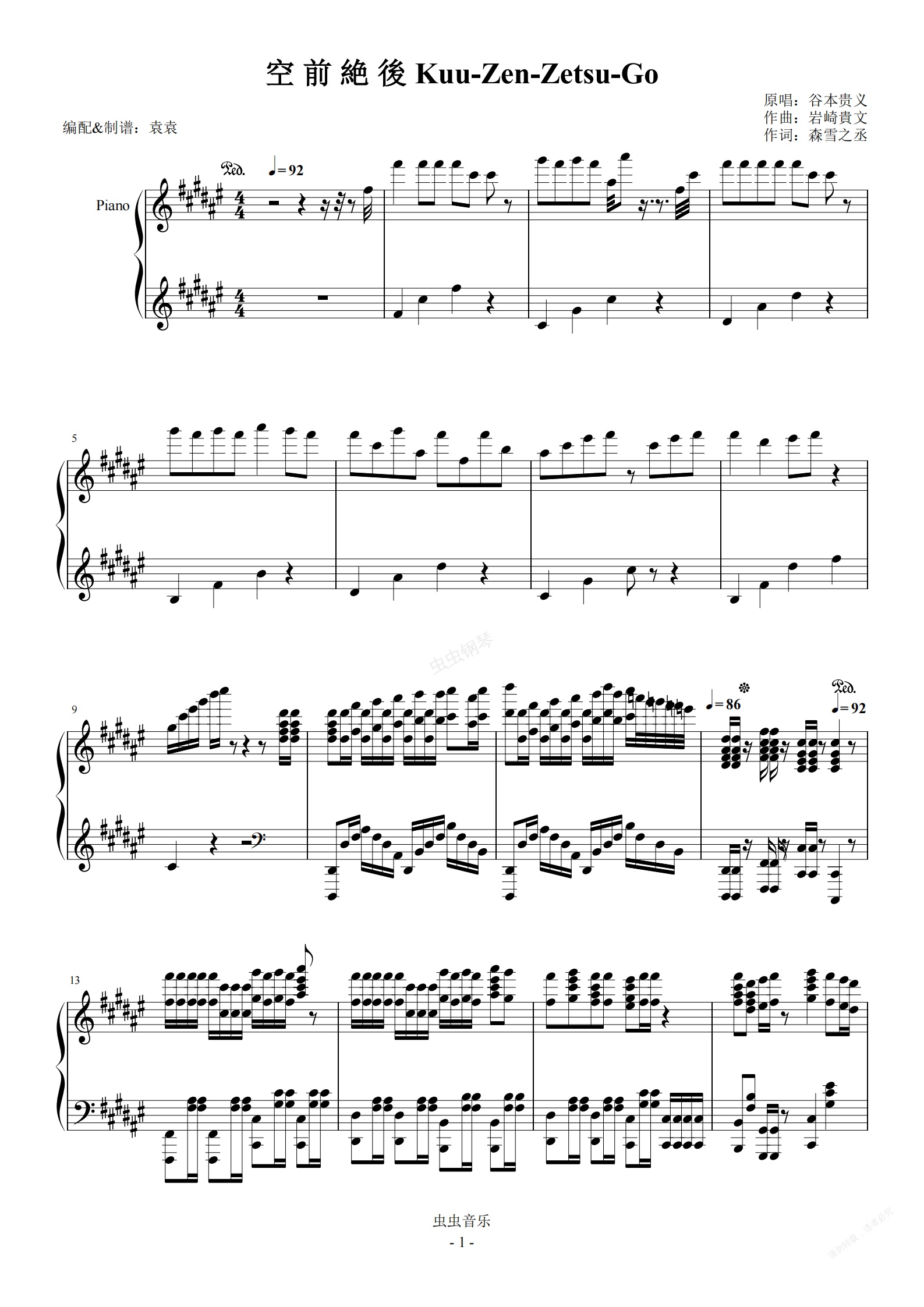钢琴谱:龙珠改OP2空前绝后/空 前 絶 後 Kuu-Zen-Zetsu-Go