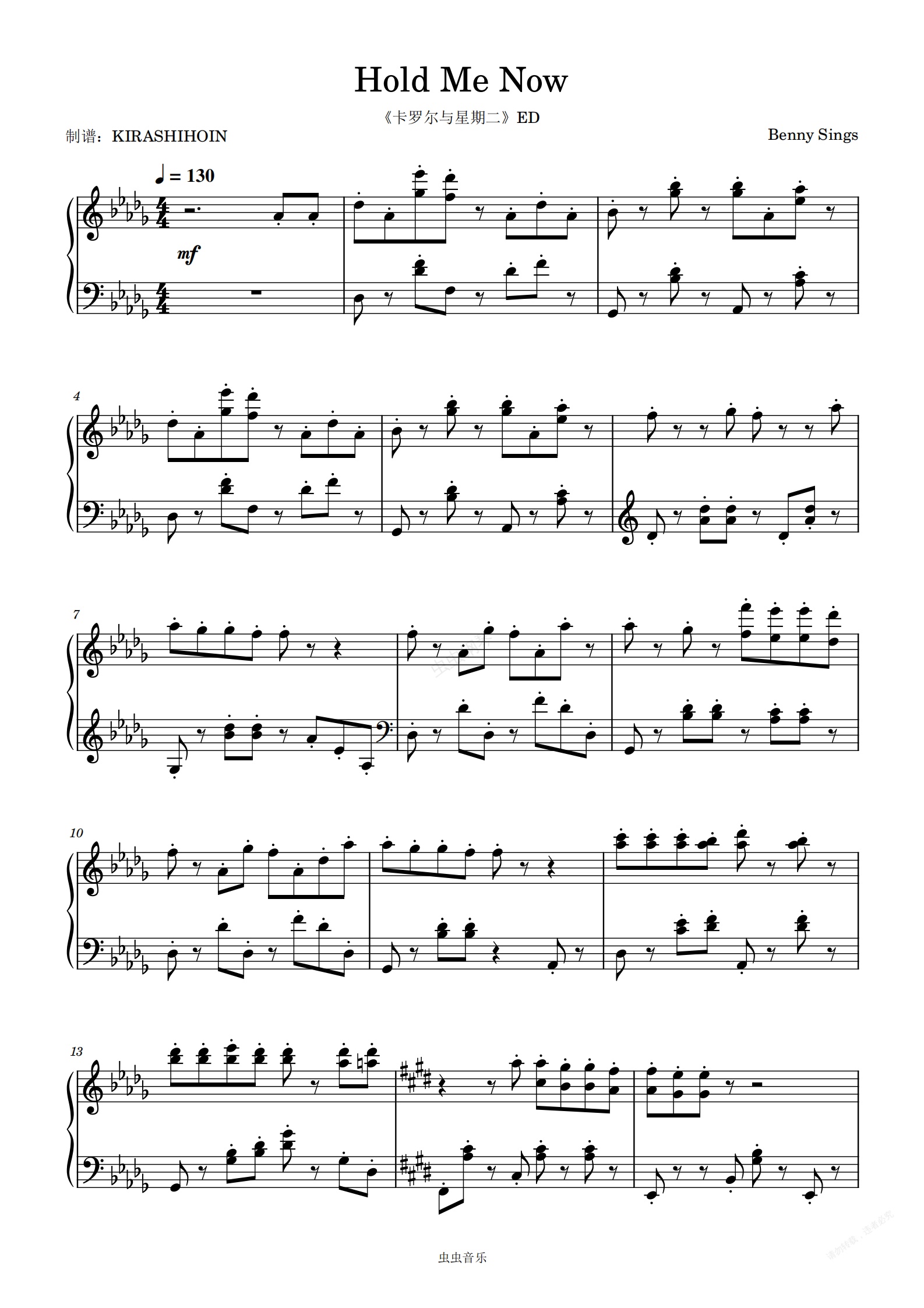钢琴谱:Hold Me Now(《卡罗尔与星期二》ED)