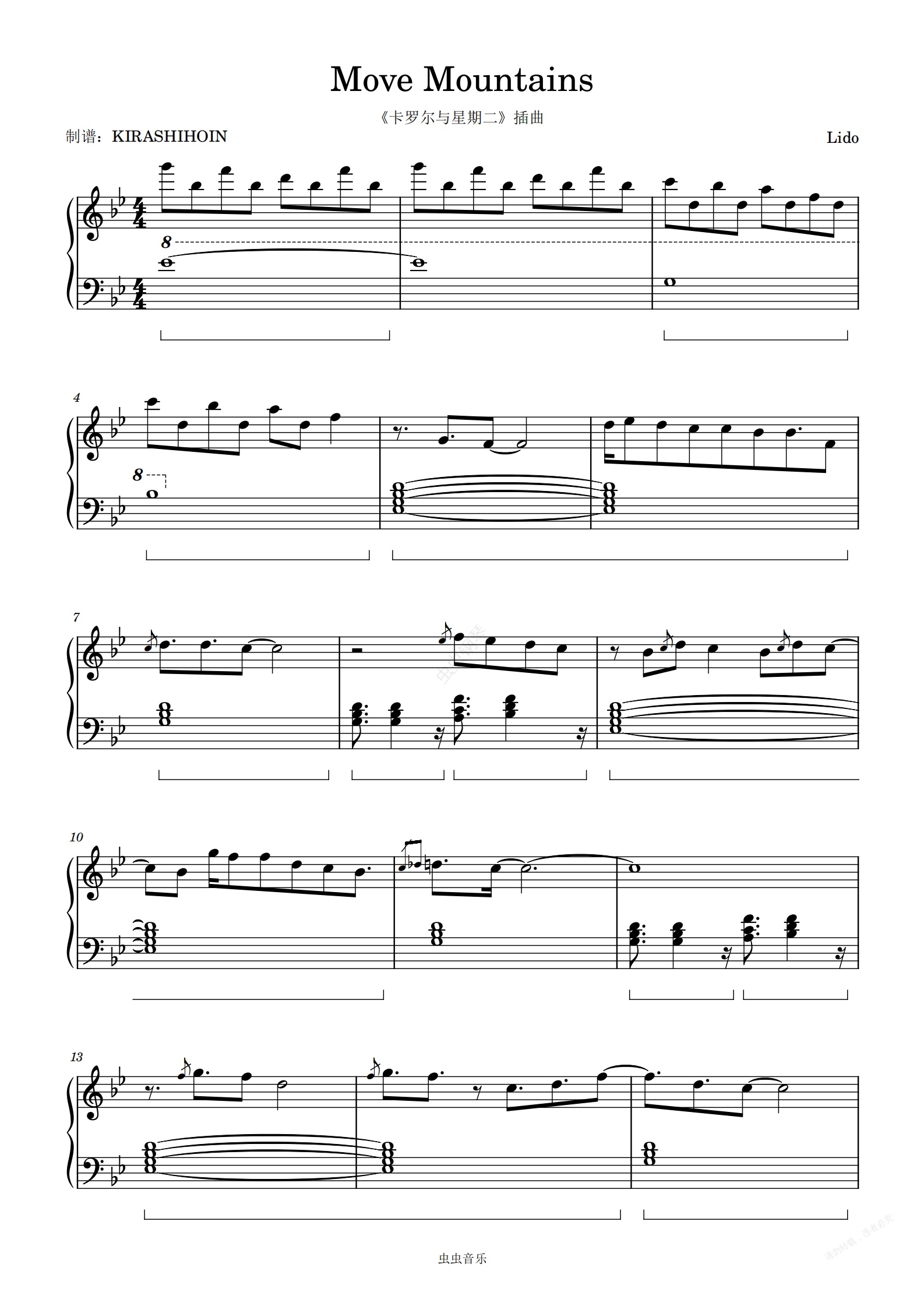 钢琴谱:Move Mountains(《卡罗尔与星期二》插曲)
