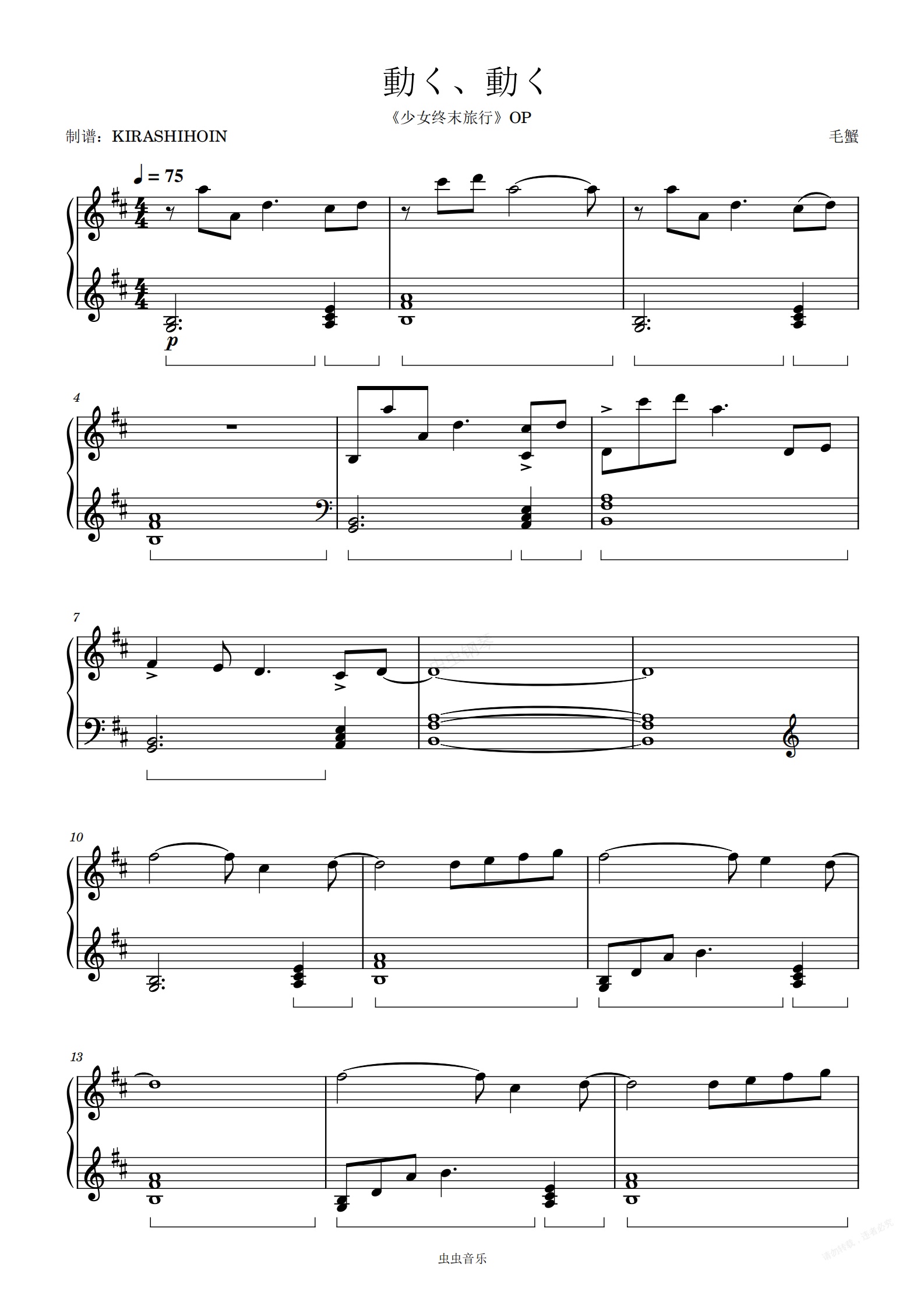 钢琴谱:動く、動く(《少女终末旅行》OP)