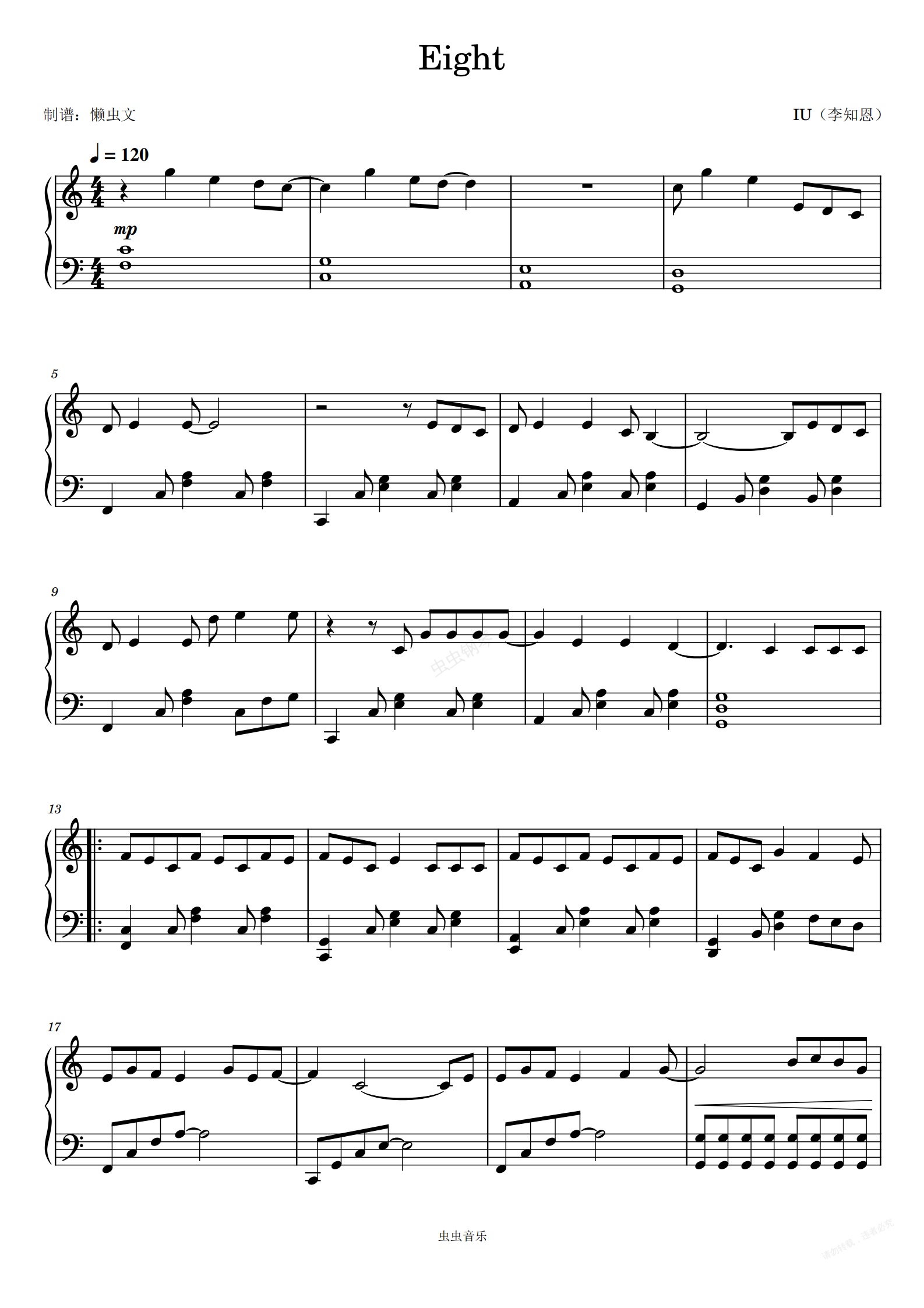 钢琴谱:李知恩-《Eight 》