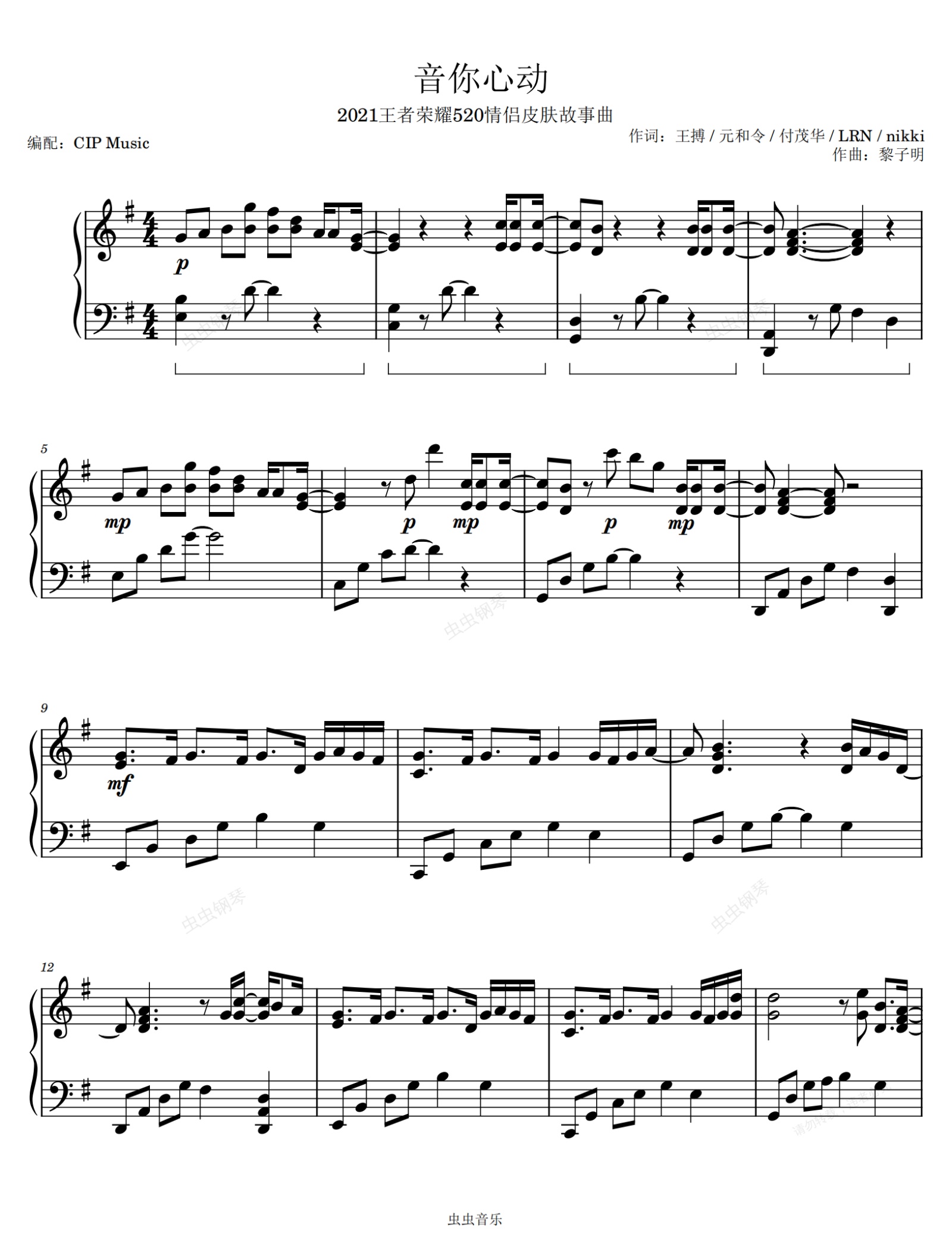 钢琴谱:《音你心动》王者荣耀520周瑜&小乔皮肤故事曲