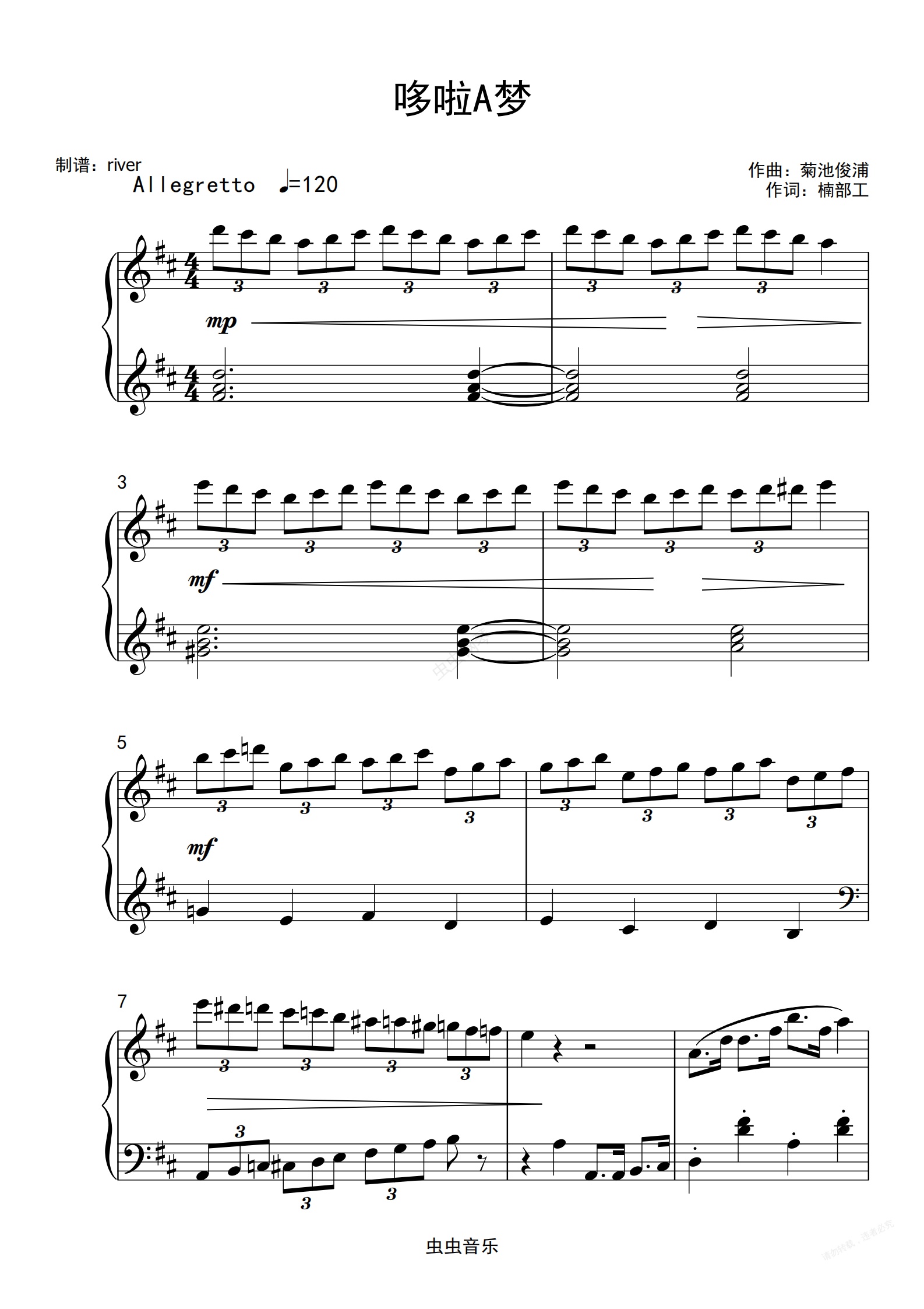 钢琴谱:哆啦A梦 完美易弹版
