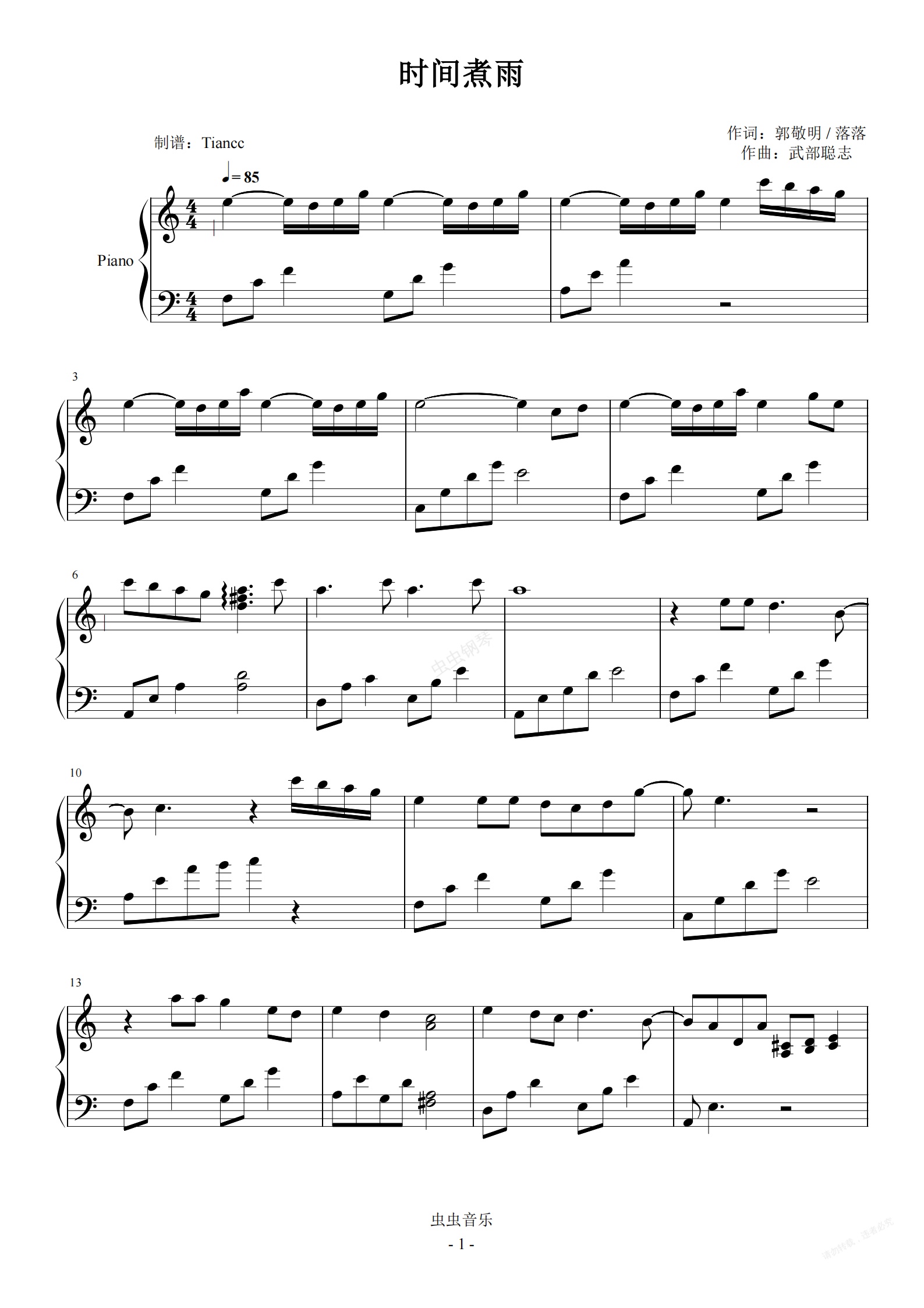 钢琴谱:《时间煮雨》599难度,抒情轻音乐