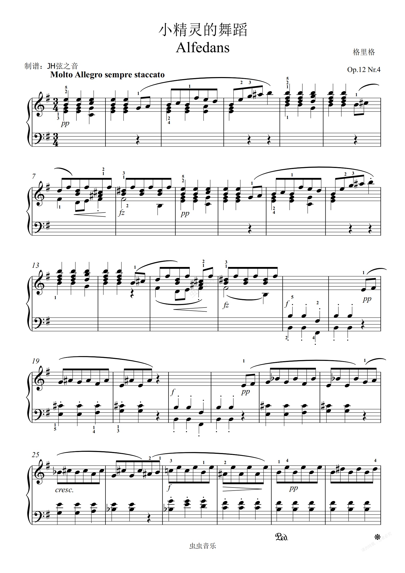 钢琴谱:小精灵的舞蹈 Op.12 Nr.4-格里格钢琴抒情小品