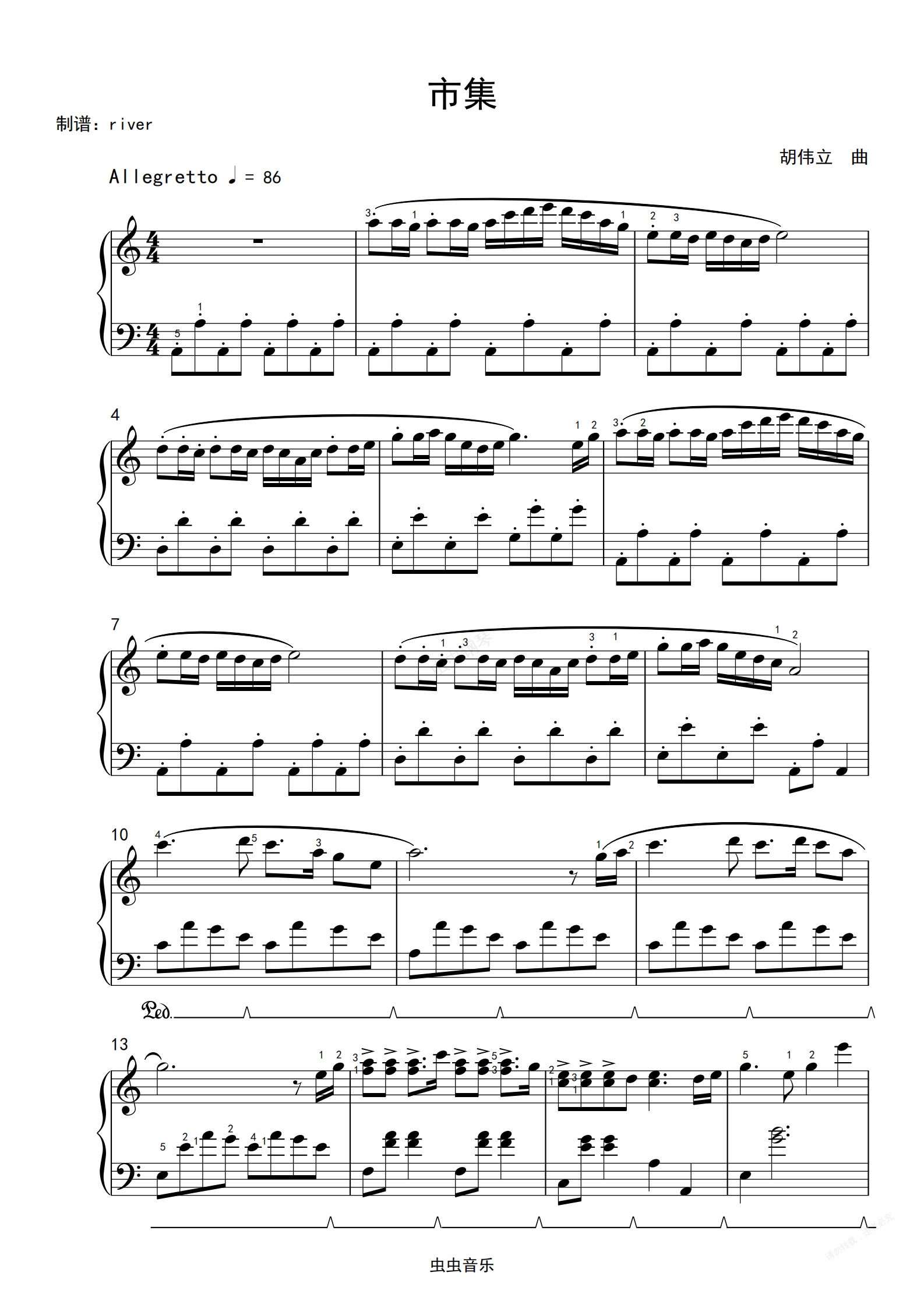 钢琴谱:市集 c调易弹版《醉拳》插曲