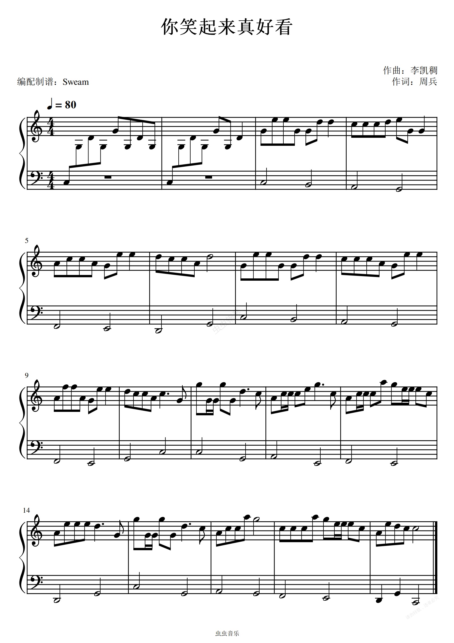 钢琴谱:你笑起来真好看(小白入门易上手超简C调嘻哈版)