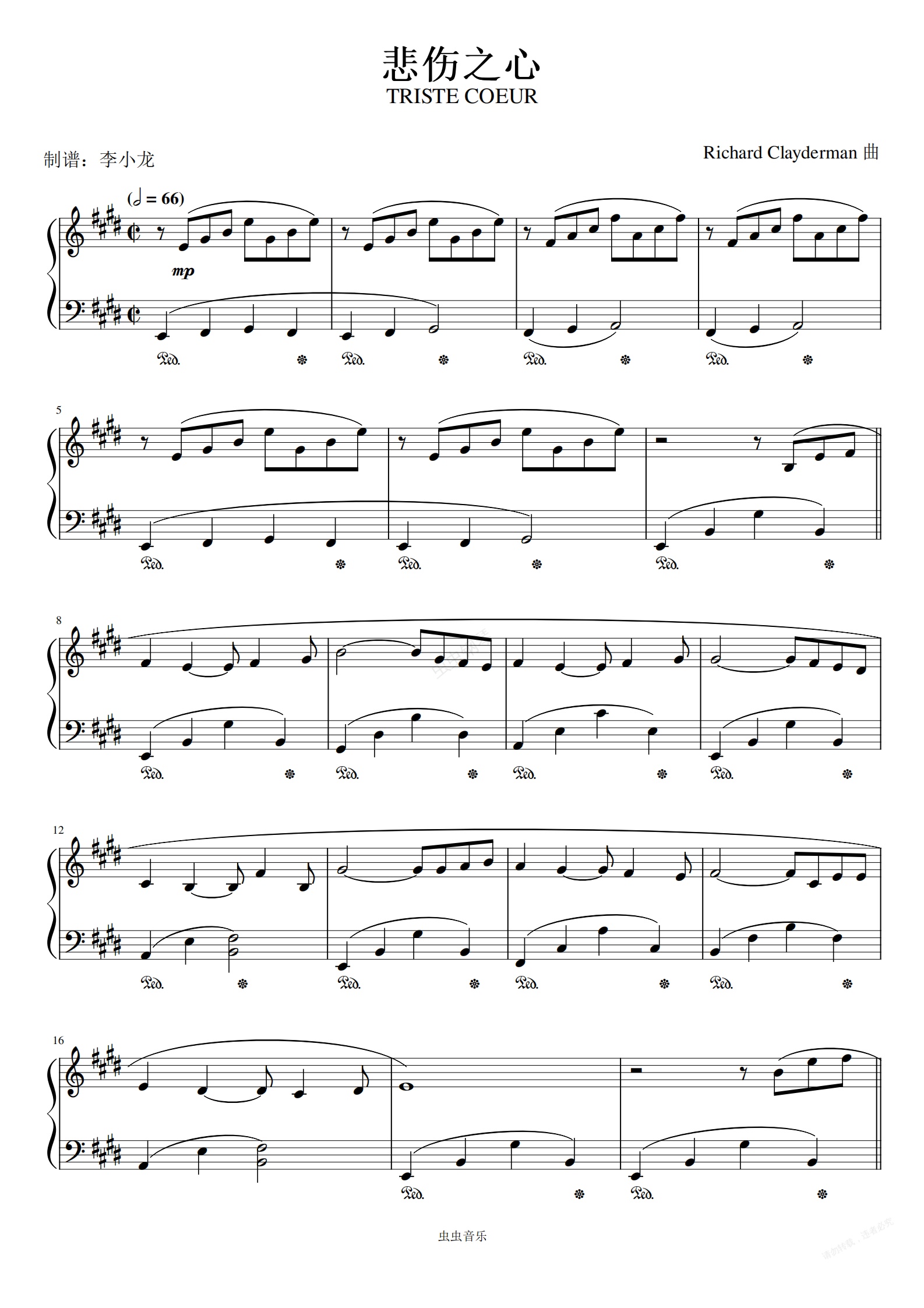 钢琴谱:理查德克莱德曼-《悲伤之心》