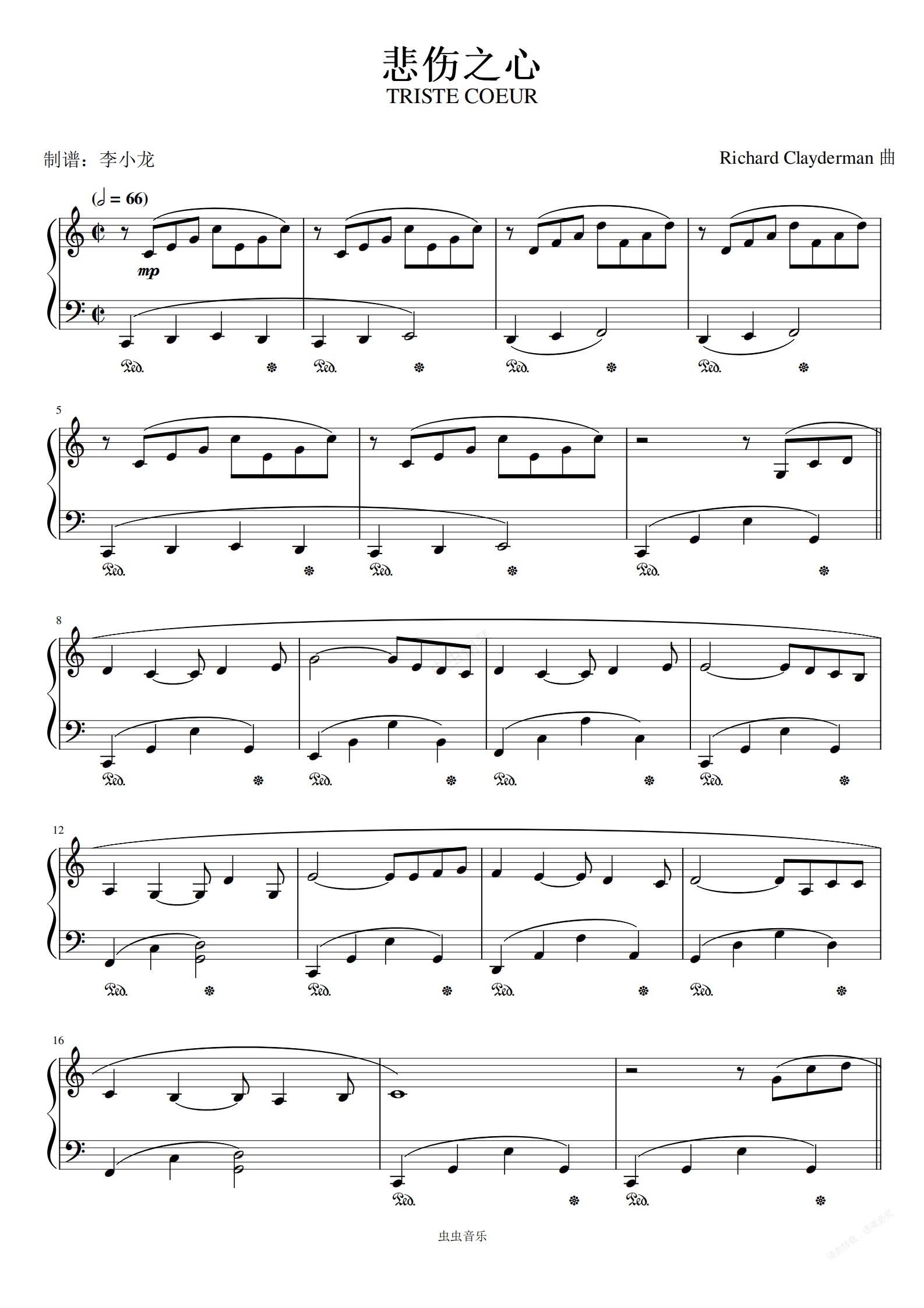 钢琴谱:理查德克莱德曼-《悲伤之心》