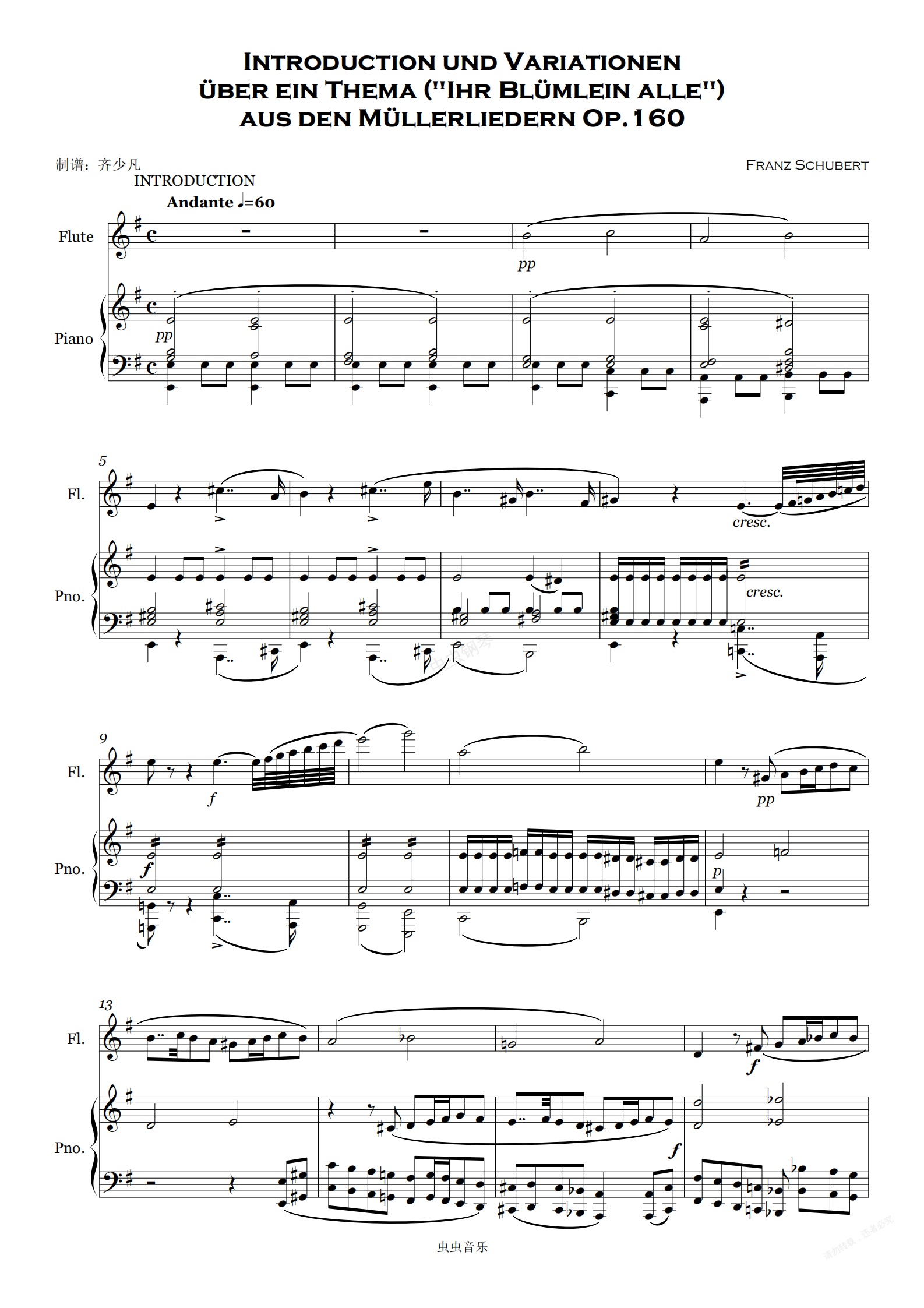 钢琴谱:【长笛与钢琴】舒伯特《引子与变奏》OP.160