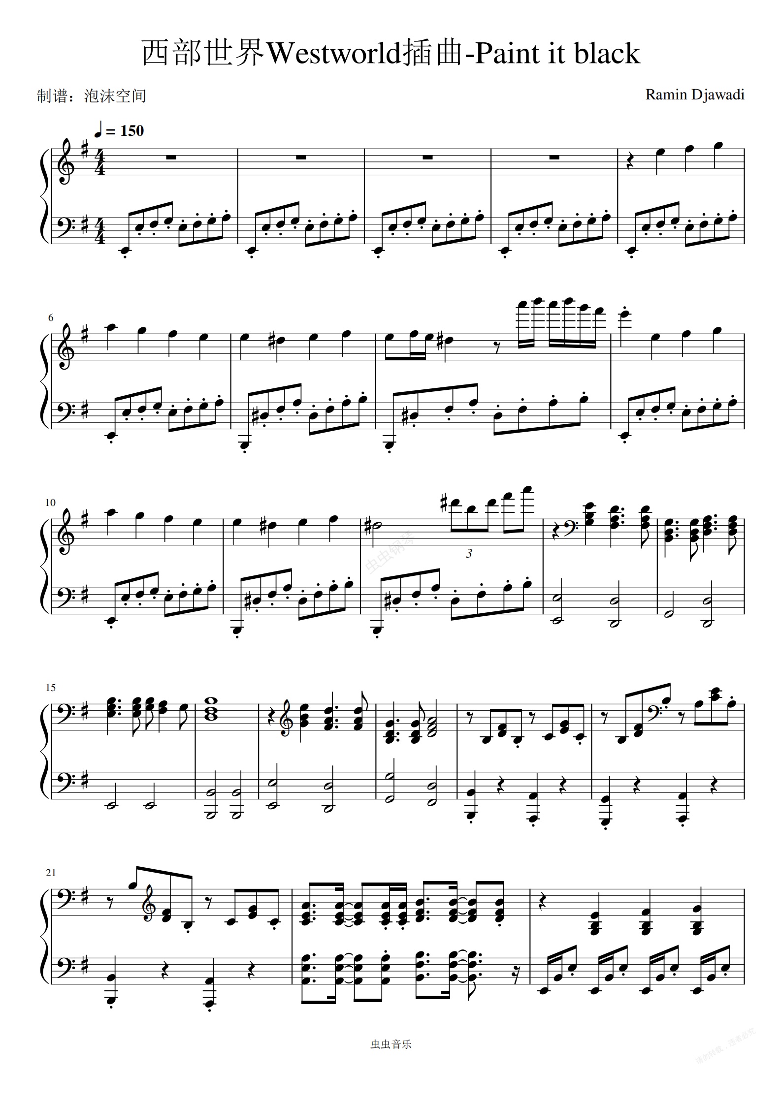 钢琴谱:西部世界Westworld插曲-Paint it black